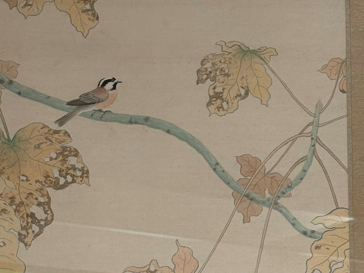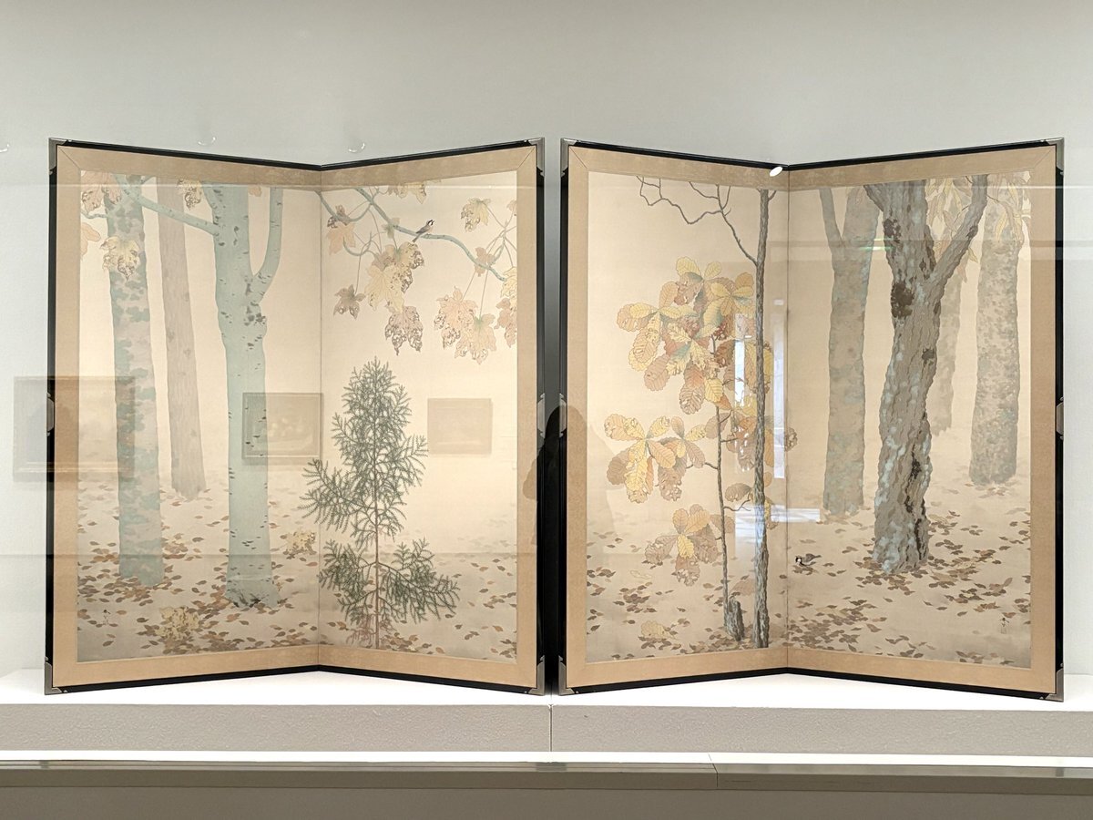 昨年福井を旅行した際に訪れた福井県立美術館で開催していた菱田春草展。素晴らしくて特に落葉の作品が並んだ空間は忘れられない。その時展示されていた茨城県近代美術館が所蔵する落葉の作品が秋の所蔵作品展で展示されてるとのことで見に行ってきた。春草の作品はもう一点夕陽が展示されていた。 pic.x.com/owWJlonmEo