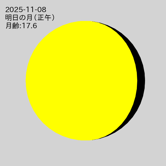 明日のこよみ(大阪) 2025年11月08日(土) (旧暦 2025年9月19日 先負) 日の出 06:25 日の入り 16:58 月の出 19:07 月の入り 09:32 月齢(正午) 17.6 pic.x.com/akZ1twFVRU