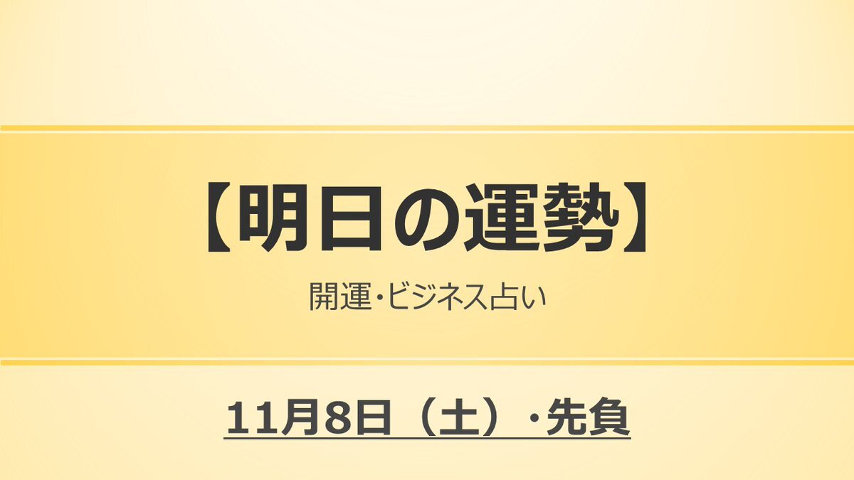 【明日の運勢】 開運・ビジネス占い ・11月8日(土)・先負 【子年】 仕事▲ 恋愛▲ ギャンブル○ ラッキー数:5の倍数 カラー:白 ビジネス指針:何か変わった事や新しい事をやりたくなっても今日は静観すること 【丑年】 仕事◎ 恋愛△ ギャンブル◎ ラッキー数:4,6,9 カラー:赤 pic.x.com/hgQInPwX4c
