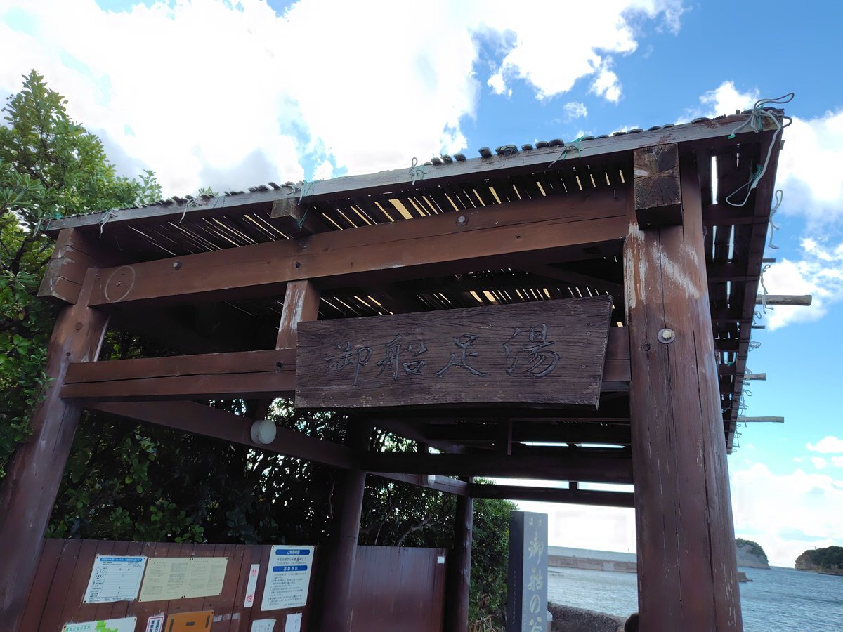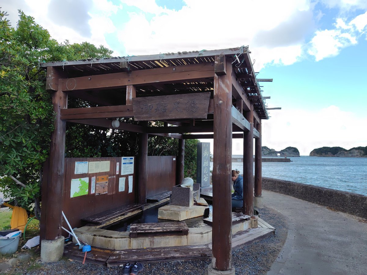 尚、松乃湯の前の駐車場脇には「御船足湯」があり、前述の有料駐車場内には、この足湯専用の駐車場も2台分確保されています 座る場合によっては足湯に浸かりながら円月島を眺められるスポットです♨ pic.x.com/wfma6pqtEv