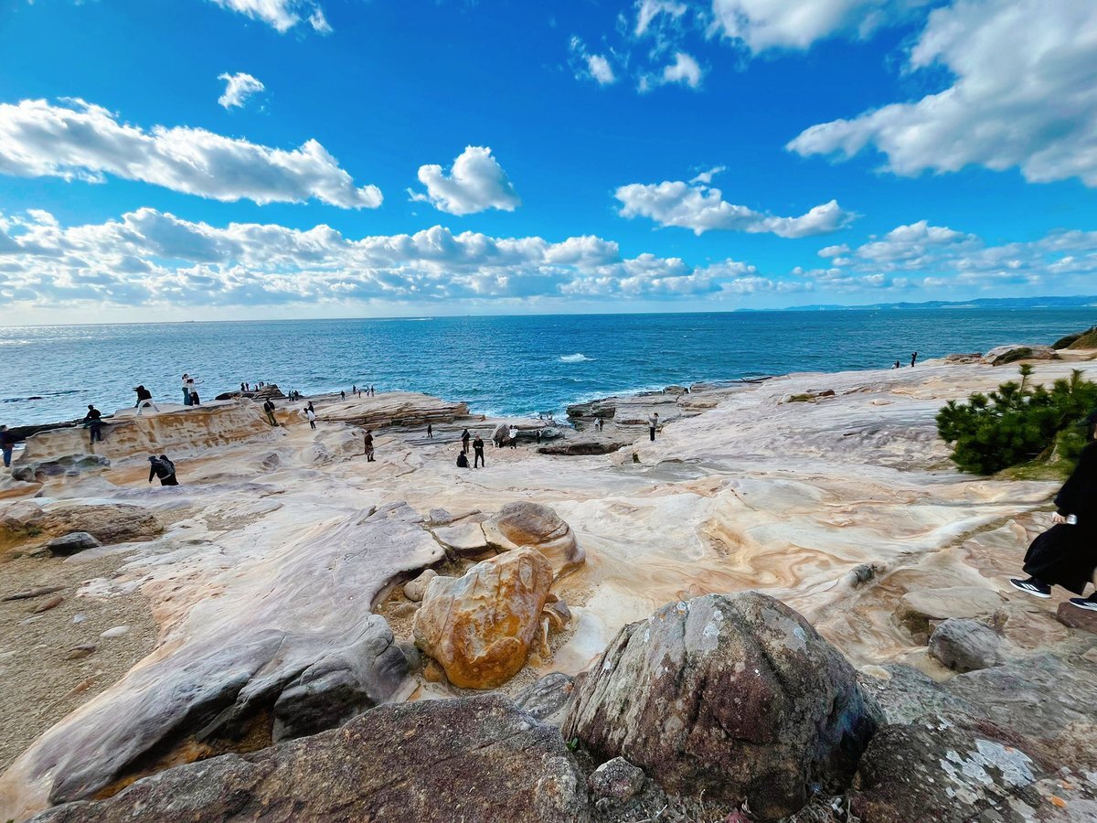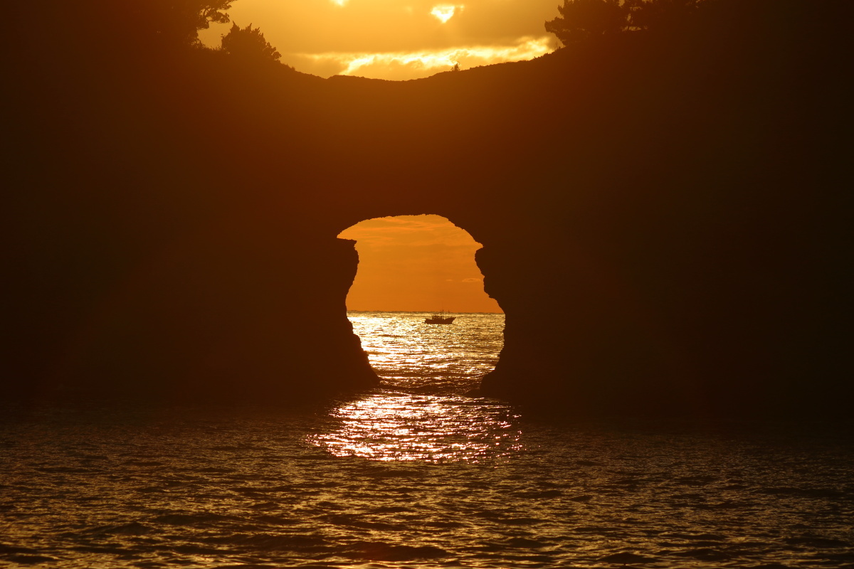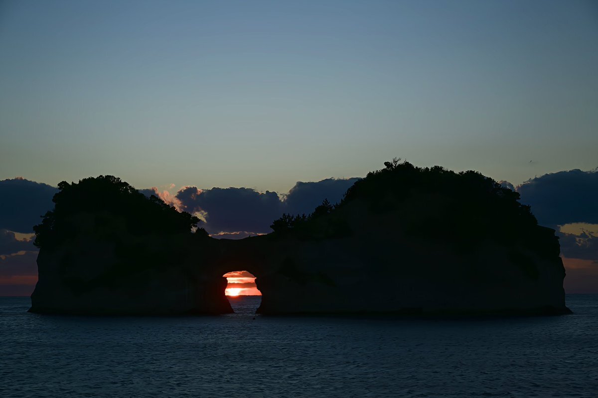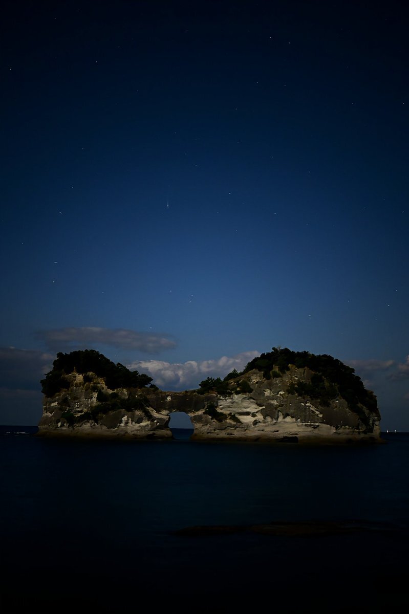 返信先:@WaFFsdzAiNop大勢の人が円月島の夕日を楽しんだ 円月島(えんげつとう),正式名稱為高嶋(たかしま),是位於日本和歌山縣西牟婁郡白濱町臨海浦的一座無人島,被指定為日本的國家名勝。 它是白濱的象徵之一,以其獨特的海蝕洞景觀而聞名,該海蝕洞位於島嶼中央,形狀宛如滿月,這也是「圓月島」名稱的由來。 pic.x.com/gSaAkunk1b