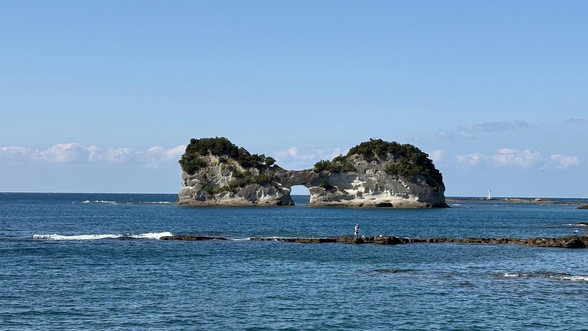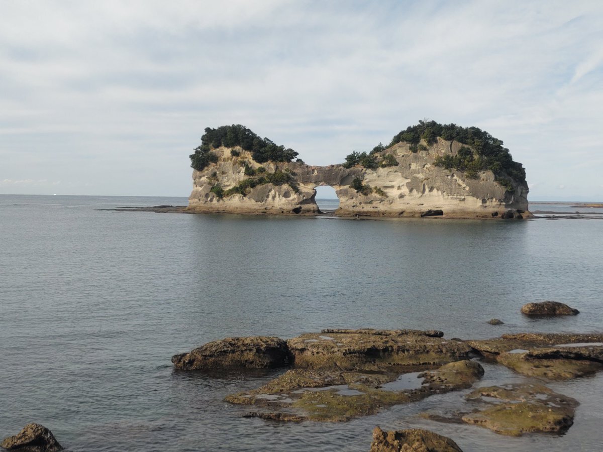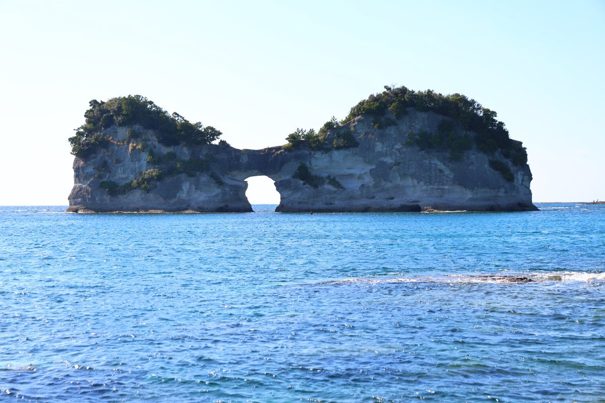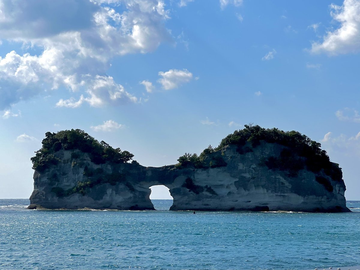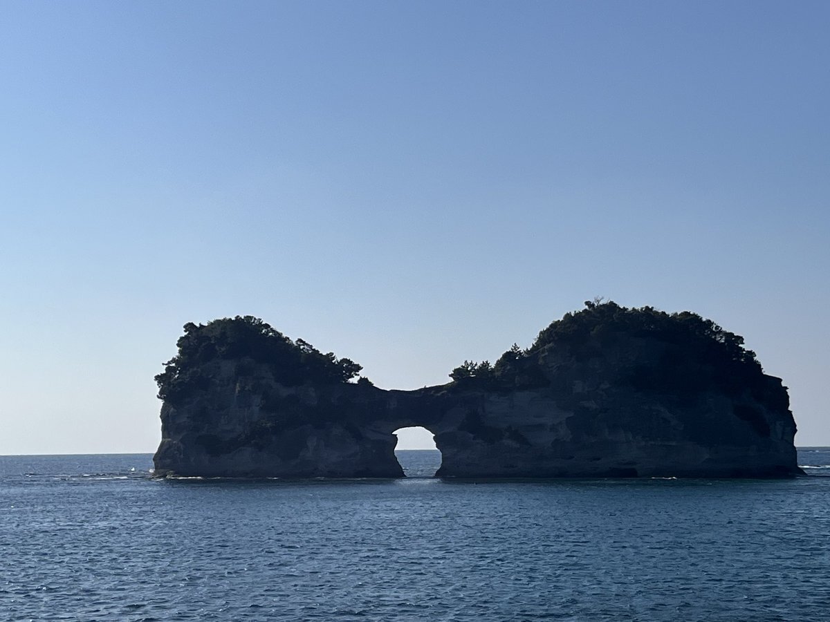 【和歌山のいいとこ100個あつめてみた】 56/100 今日のいいとこは「円月島!」 島の真ん中にお月様のような穴が開いていることから円月島と呼ばれています! pic.x.com/eYvljEnYrb x.com/kapot1014/stat…