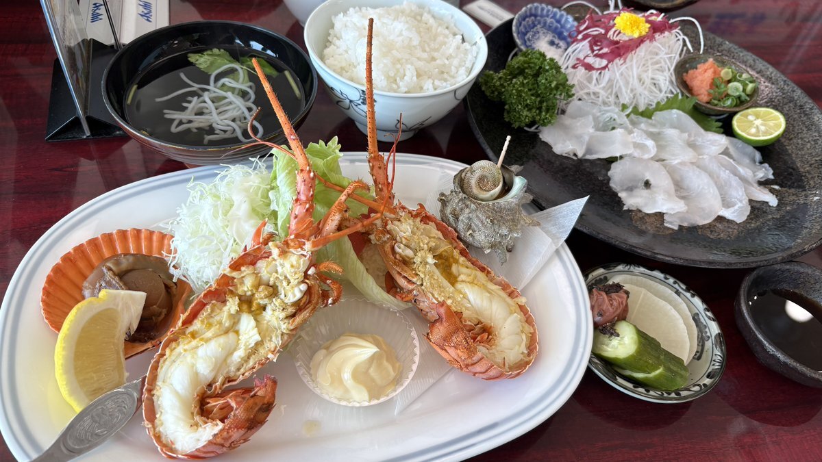 伊勢海老ランチ3,850円&クエの薄造り4,400円。珊瑚礁@白浜町(和歌山県)。ブリンブリンに弾力あって噛むほどに美味い伊勢海老と南紀白浜に来たら絶対食べたかったクエ。初めて食べたがこいつはウンメェ〜!鈴ヶ森よ、旅先でのメシは躊躇せずいけ #南紀白浜 #円月島 pic.x.com/lSVFREG1Jr