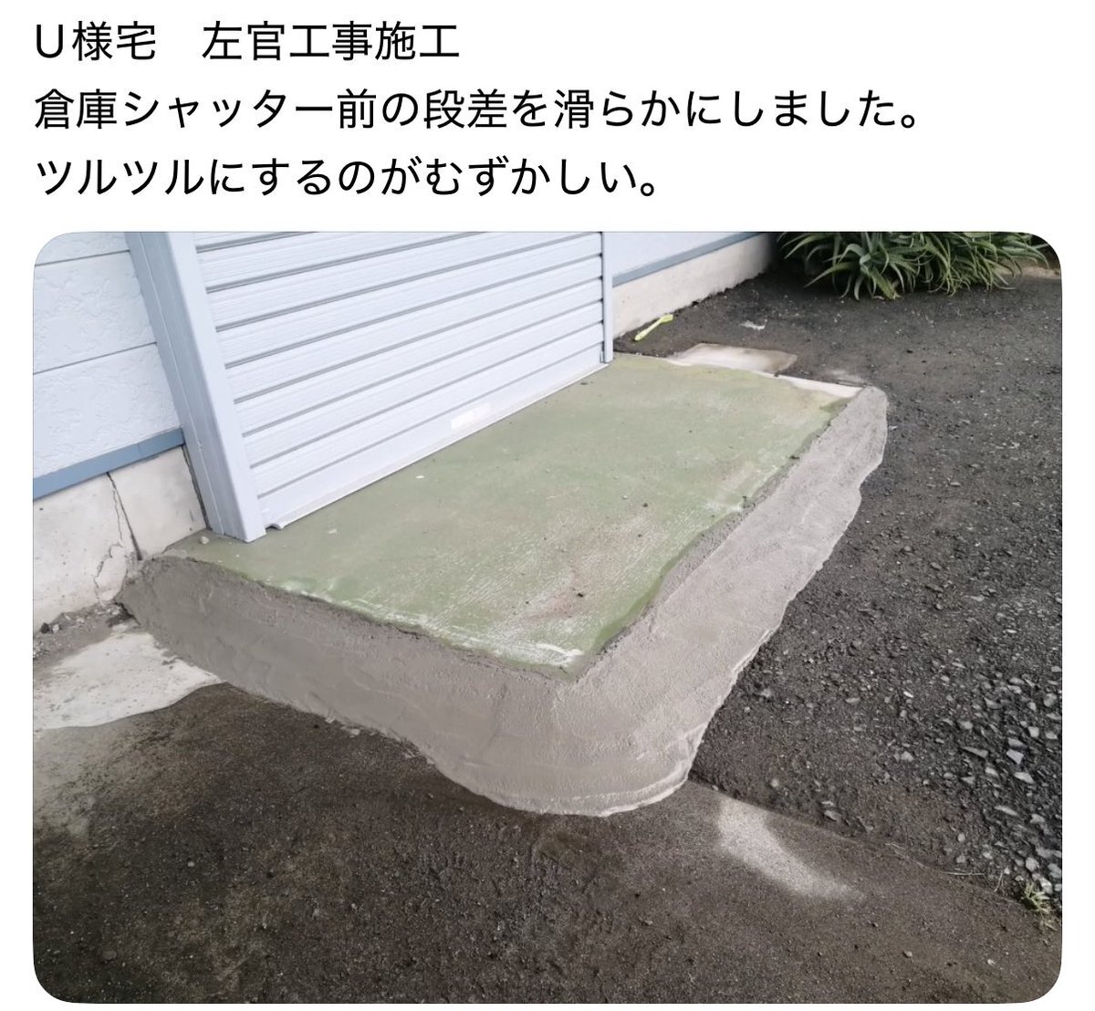 建設業に携わってる人ならシャッター前50mm位でカッター入れて全面斫って勾配取り直すか、周りを掘って差し筋して延長するか、の二択だと思うんだけどなぁ😅 あと、仕上げはツルツルにはしないw 刷毛引きかな~🤣 x.com/norimenman/sta…