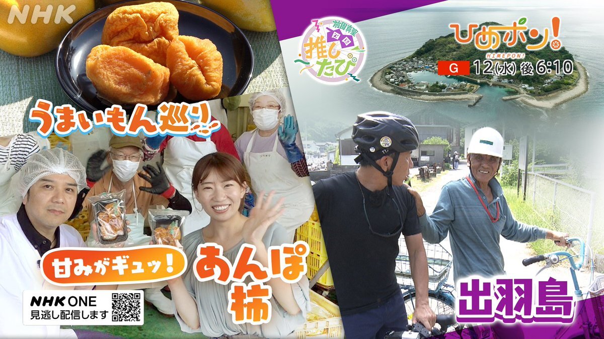 📺11月12日(水) 午後6時10分~ きょうの #ひめポン! は・・・ 😋とろりとした食感で濃厚な甘み 西条市の「あんぽ柿」 🚴♂️#前園真聖 さんは徳島県へ 出羽島での出会い ほか、愛媛の最新ニュースをお送りします 📺放送内容はこちらから web.nhk/tv/an/himepon/… pic.x.com/x8SXCMz1IC