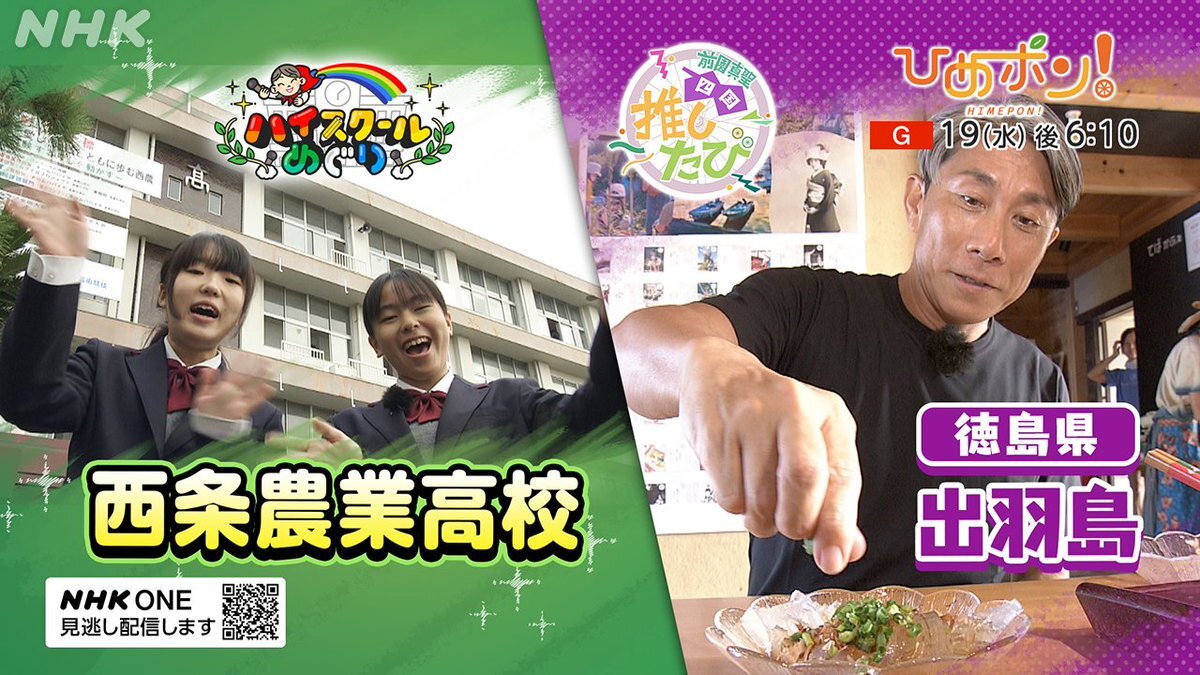 📺11月19日(水) 午後6時10分~ きょうの #ひめポン! は・・・ 🏫西条農業高校 自慢が詰まった料理紹介 🚴♂️#前園真聖 さんは徳島県へ 出羽島 絶品ところてん ほか、愛媛の最新ニュースをお送りします 📺放送内容はこちらから web.nhk/tv/an/himepon/… pic.x.com/AkW7Aa2YBu