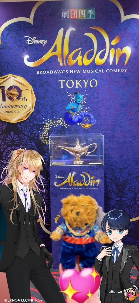 AKG行きたかったけど、古傷の膝をやってしまい、一時的に杖歩行なので、大人しく留守番します😭 となモまでには回復してるといいなぁ🥲 学校枠で当選したので劇団四季観てきた!舞台も小道具も豪華絢爛で笑いが絶えずとても楽しかった🥰瀧山ジーニーが良すぎて思わずお迎えしちゃったよ🧞♂️🧸 pic.x.com/D5LgryKage
