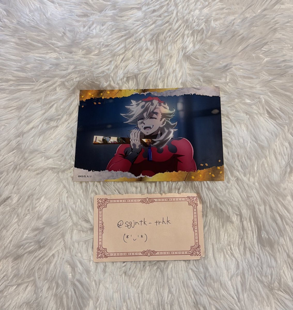 【譲渡】 劇場版鬼滅の刃無限城編アニプレオンライン 第三弾第四弾第五弾キービジュアル猗窩座しのぶ善逸 繋ぐ炭治郎と義勇 花火大会狛治と恋雪 無限列車編五周年杏寿郎vs猗窩座 くじ 譲:画像参照 求:定価+送料 地方在住のため取引方法は郵送になります。 ↓ pic.x.com/IyEzSBlcdM