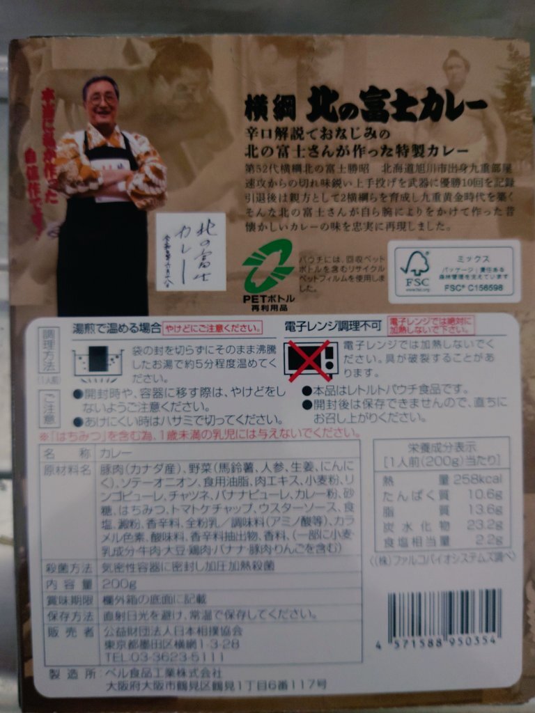 元横綱北の富士監修の北の富士カレーを購入!⚡🍛 関取のように大きく豪快な肉や野菜具材が惜しみなく入っていて深みのあるレトルトカレーと思えない美味さでした!! 『うすっ!ごっつぁんです✋💥』 pic.x.com/t3b0WR97wS
