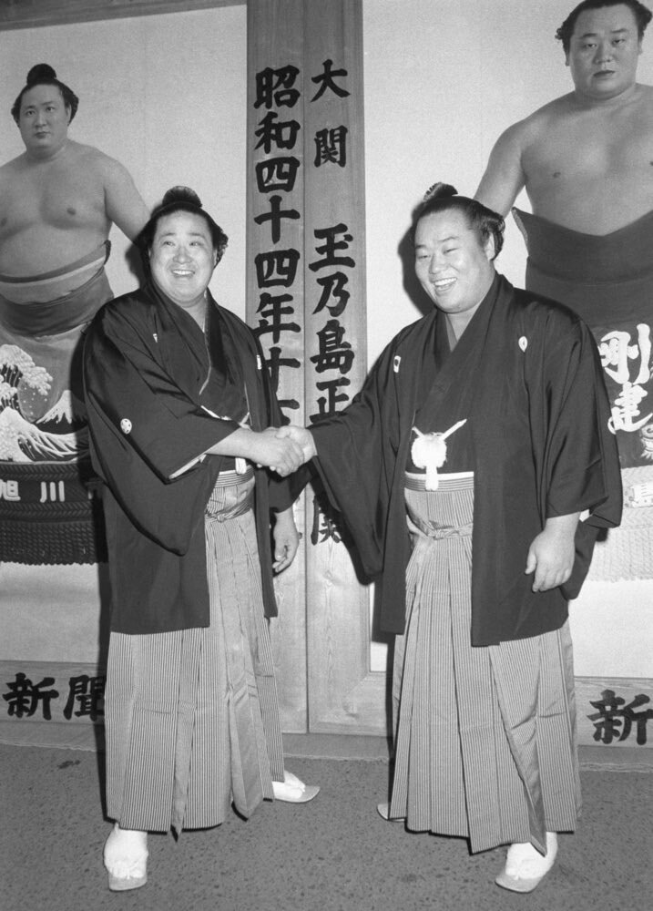 今日10/11は、完成された右四つの型は、未だに破られていない不滅の69連勝を成し遂げた"相撲の神様"第35代横綱双葉山の再来"と謳われ、27歳の若さで現役中に早世した、第51代横綱玉の海正洋の、54回目の命日… 横綱同時昇進を果たしたライバル北の富士さんが去年亡くなってから初めて迎える命日… pic.x.com/KtnTjkOYgT