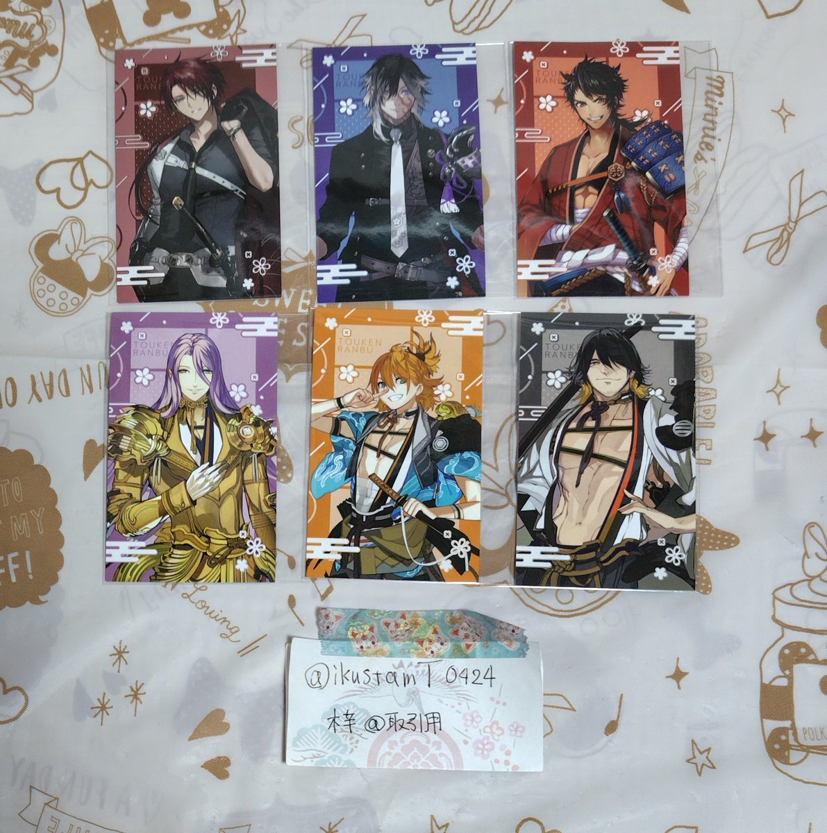 【交換】 舞台刀剣乱舞 くじラック 十口伝 特典 譲*日光一文字 笹貫 北谷菜切 小烏丸 大典太光世 ソハヤノツルキ 求*山姥切長義 特典は同条件特典の為1:1が望ましいですが抱き合わせの条件などございましたらご提示ください。 ABDは同賞交換優先。抱き合わせはお好きな賞選んでいただいて🆗 pic.x.com/mrmmvtnGHY