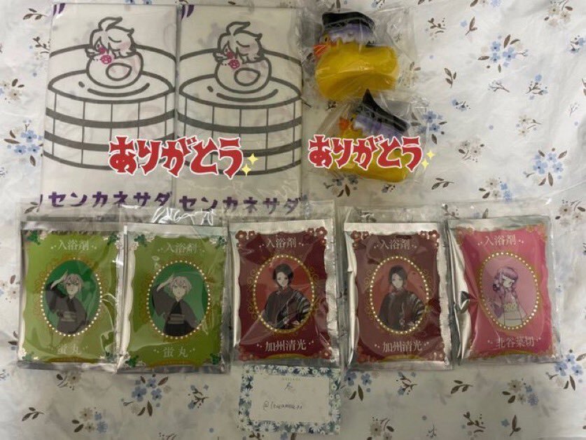 【譲渡】刀剣乱舞ONLINE 湯浴み 楽天コレクション 譲: 今弾 ★火車切 前弾 大包平、明石、蜂須賀、★加州2、蛍丸2、北谷菜切、★清麿、★長谷部 求: 今弾 山姥切国広、鶯丸、髭切 前弾 キーホ、入浴剤 250円(+送料) ★交換のみ 都内横浜手渡し、郵送 pic.x.com/VC2DPpDxjz