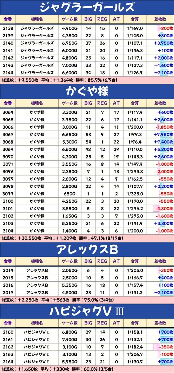 11/16(日)📝分析結果📝 エスパス渋谷新館 『週間・月間オススメポスター』 『SS取材(半沢くん・蓮くん)』 『サンデーななこ』 📢日曜日×W来店取材で多数の仕掛け! 📢オススメ機種を筆頭に優秀台が多数アリ! 🎁高配分機種🎁 🎖️ジャグラーガールズ(6/7台+)→平均+1,364枚 pic.x.com/G7wk2mEgHp