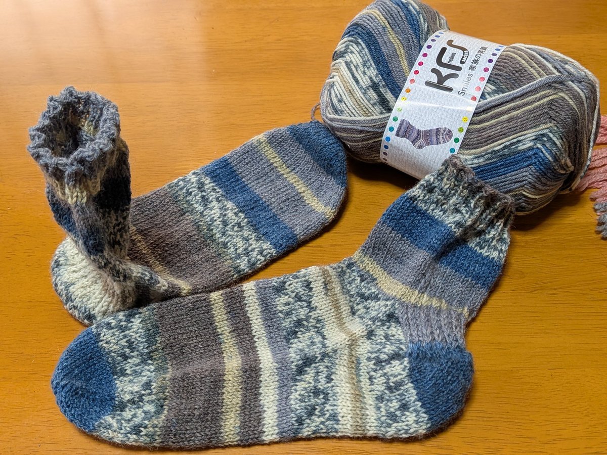 柄もの靴下はコミーや半沢さんのイメージじゃないな。  こういう色柄、やっぱり青砥さんや一色先生のイメージ。 いや、🌙番宣堺さんはカジュアルが多いので、堺さんイメージで編みましたと、今から言い張ろうかな😝 pic.x.com/OOEyBCfK11