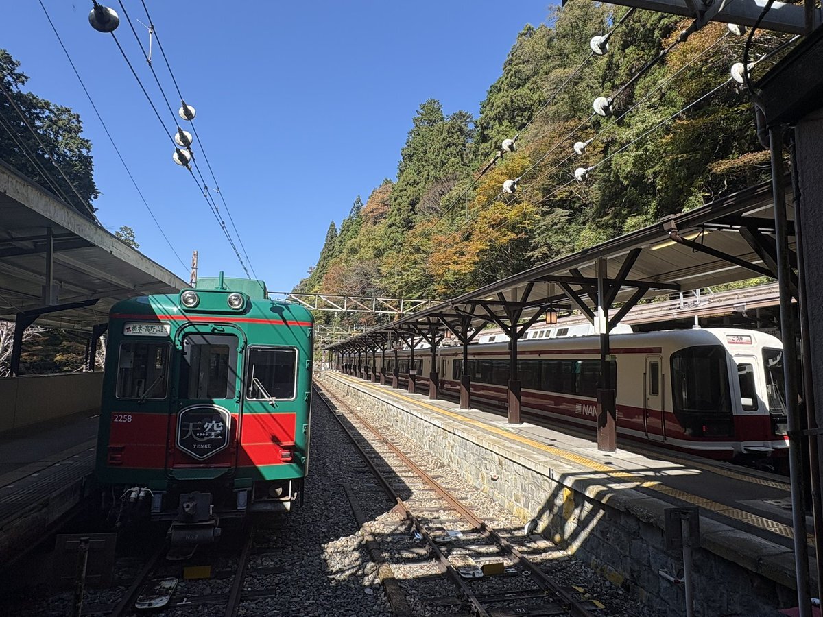 南海高野線。難波から橋本までの区間も標高が上がるんだな〜と思っていたけれど、橋本を出てからが本番だった 特急こうや号は関東の電車で例えるなら、新宿からロマンスカーが強羅駅まで乗り入れているようなものか pic.x.com/QOCJd0v06K