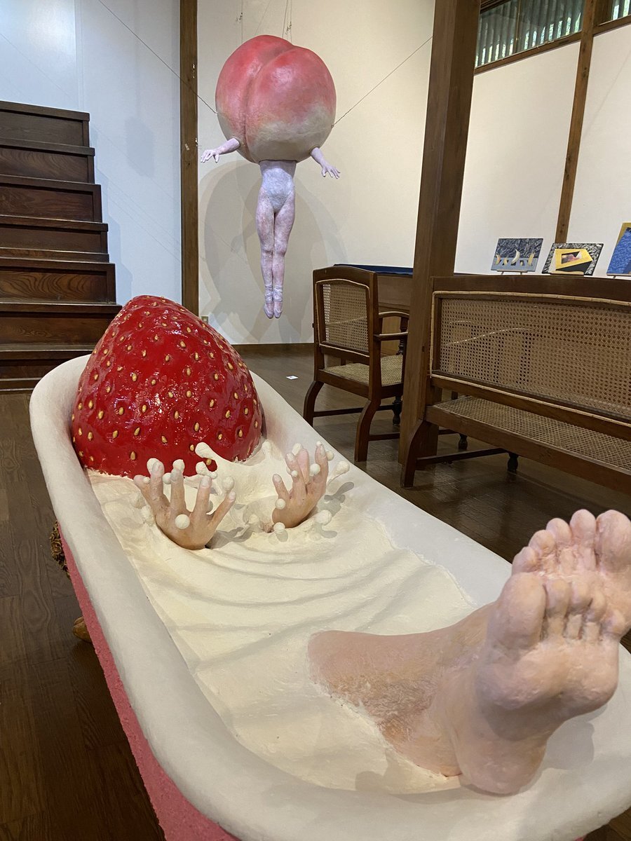 本日から『奇妙な果実たち Strange Fruits』の展示が始まりました。 奇想天外な作品の数々。 まぼろし博覧会セーラ館長にもぜひ見ていただきたいです。 『奇妙な果実たち Strange Fruits』 友永修一作品展 11月26日(水)〜12月7日(日) 月曜、火曜休館 りんがふらんか城ヶ崎文化資料館 pic.x.com/UMrRE1pFh4