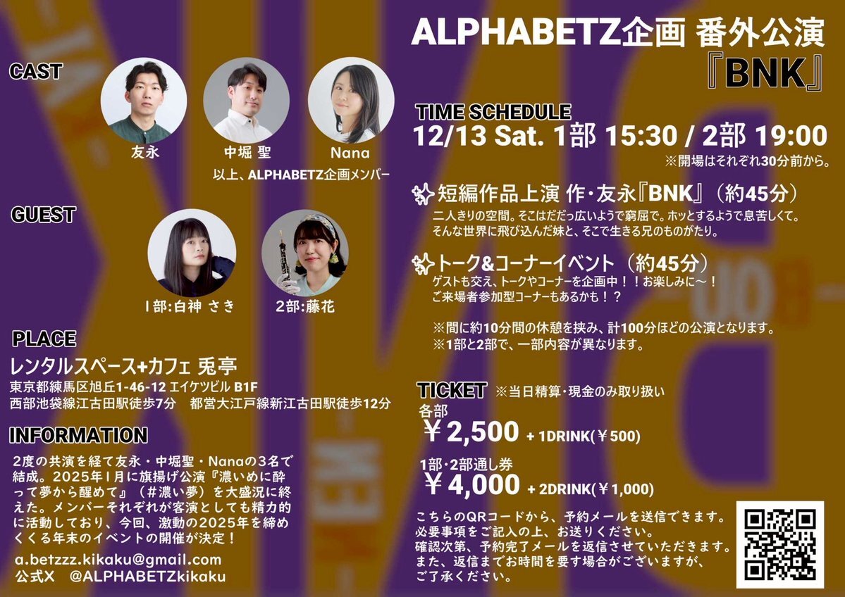 #BNK ゲスト! #濃い夢 でお世話になりました、 さきさんと藤花ちゃんに再び華を添えてもらおうと思います🙇♂️ 友永個人としては、 前回出演してないのでお二人と初共演でもあります。 onedayの開催、且つそれぞれ1公演ずつなのでぜひお見逃し無く❤️🔥 ご予約はこちら👇 mail-to.link/m9/1nq49v8 x.com/ALPHABETZkikak…
