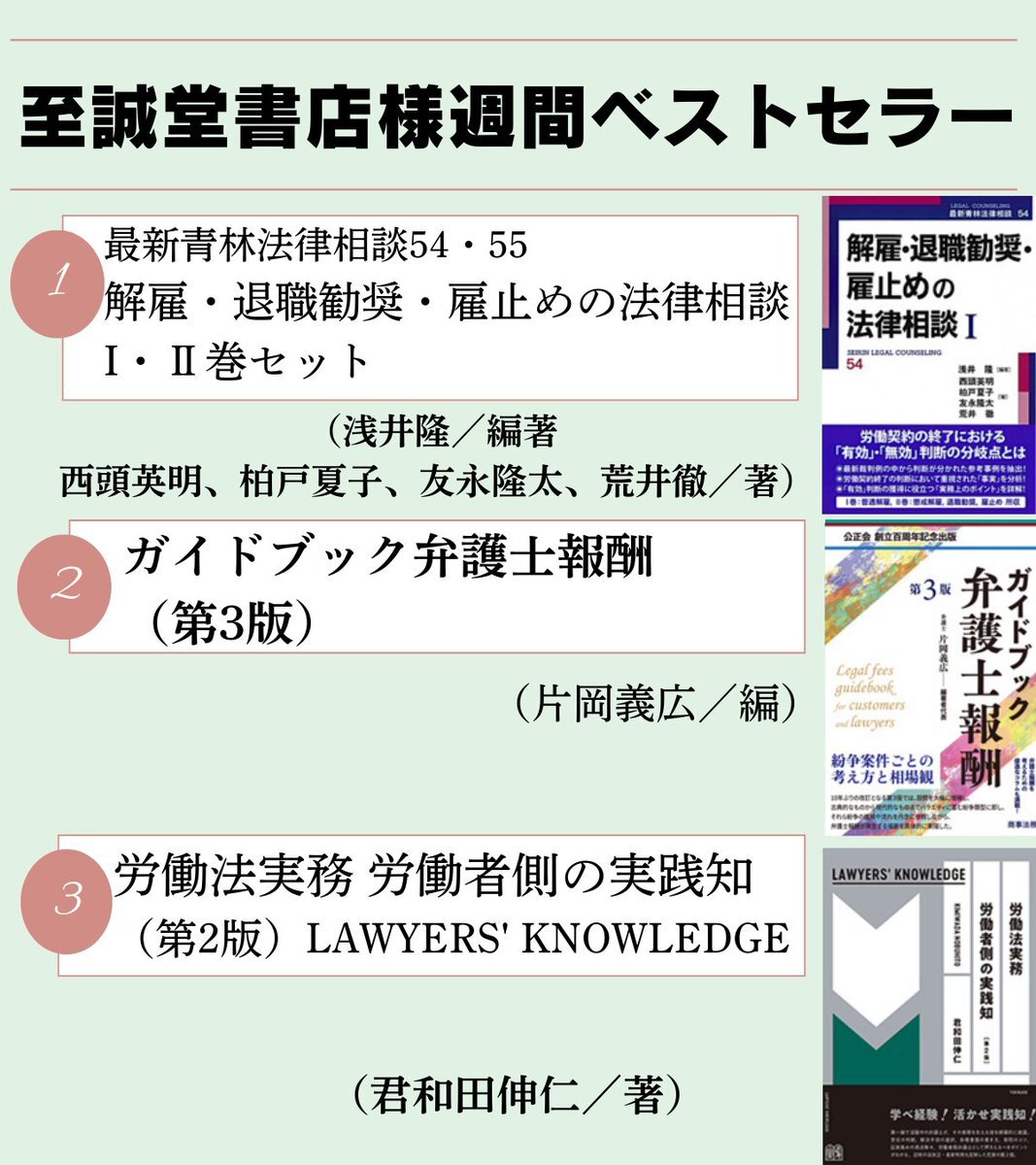 📚知識が武器になる!人気の法律書とは?? 至誠堂書店様 🥇最新青林法律相談54・55 解雇・退職勧奨・雇止めの法律相談I・Ⅱ巻セット 編著:浅井隆  著: 西頭英明、柏戸夏子、友永隆太、荒井徹 出版社:青林書院 法務図書WEB様 🥇一問一答シリーズ一問一答 pic.x.com/wAhZYET1kG