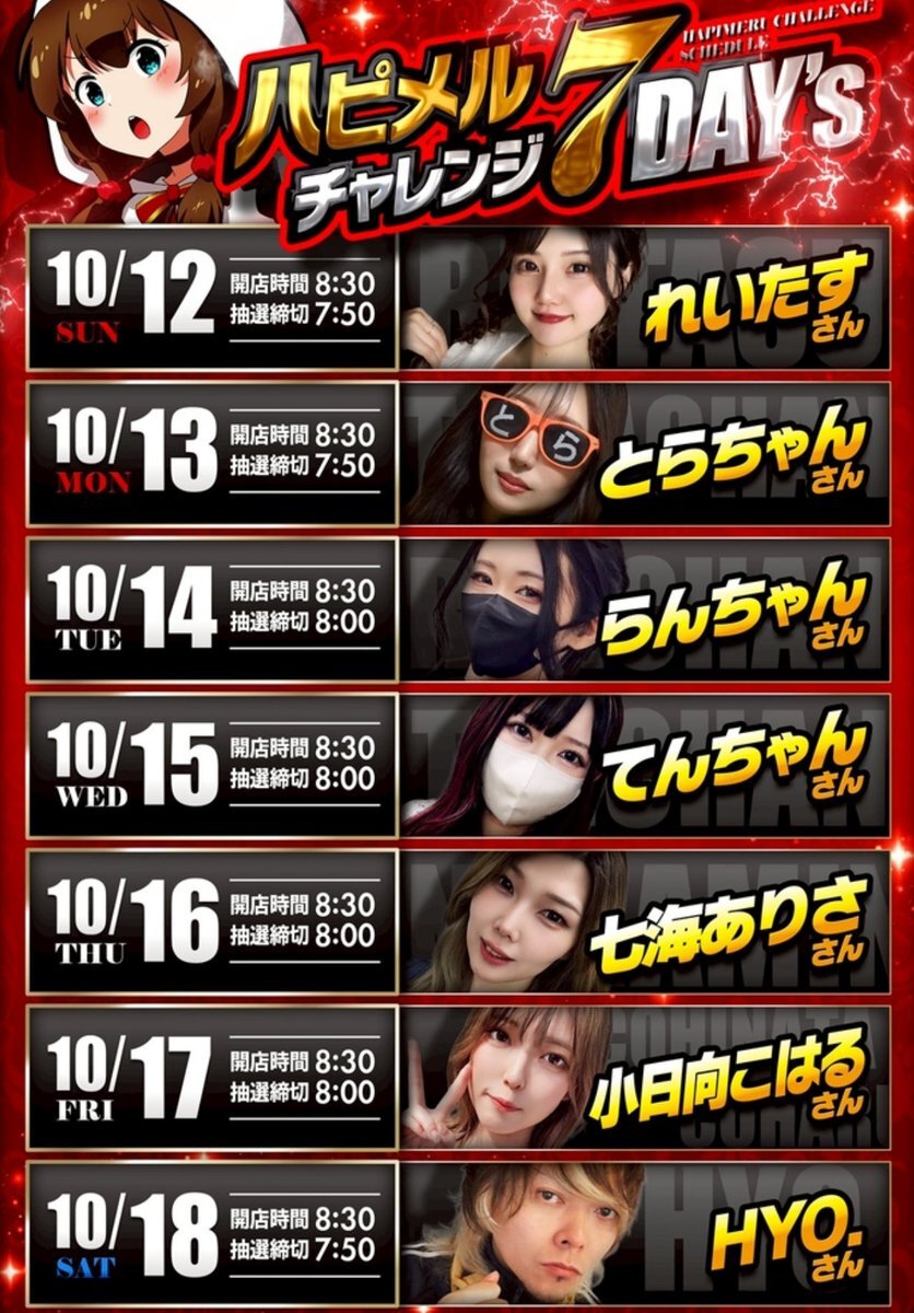 10/11 明日どこ行く?オススメ店舗☀️ ✅マルハン池袋本館/SB ・リアルブクロウ週間(10/7〜13) ・ニャンギラス😾 ・【天地】4店舗コラボ BIGディッパー新橋1号 レッドロック学芸大学駅前 ①の日恒例のニャンギラス😾 11日は都内強豪4店舗のコラボday✨ 派手な仕掛けでお馴染み😤 x.com/goltranger/sta…