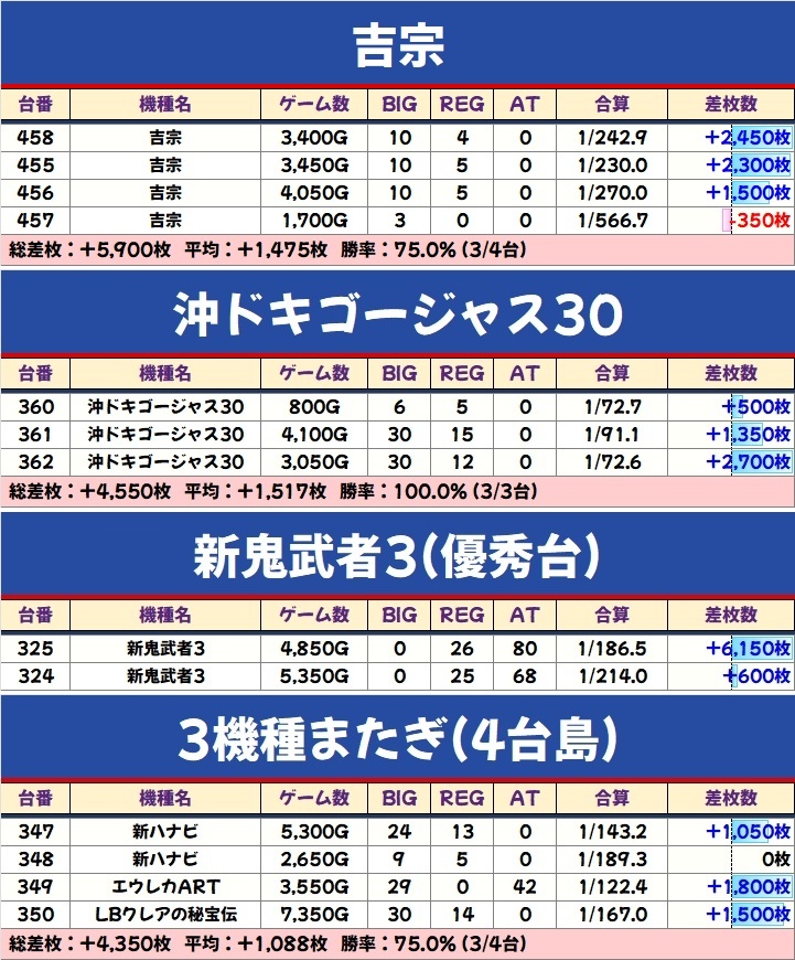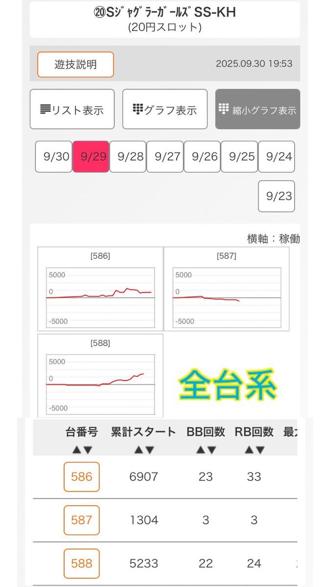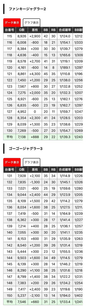 10/18 アビバ三春町 週末土曜日 天草王道ホール応援団 週末到来&王道ホール応援団📣 過去結果をまずは参考に_φ(・_・ 9/20📋️結果 ✅スロット 19/160台(11.9%) 🔴ジャグガ +4/4台 勝率100% 総差+9,261枚 平均+2,315枚 🔴吉宗 +3/3台 勝率100% 総差+18,850枚 平均+6,283枚 pic.x.com/JEnmjtraYl x.com/norakobu/statu…