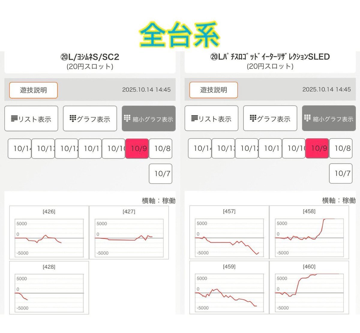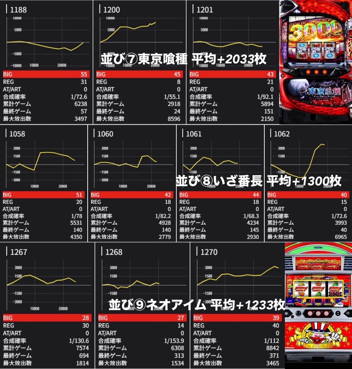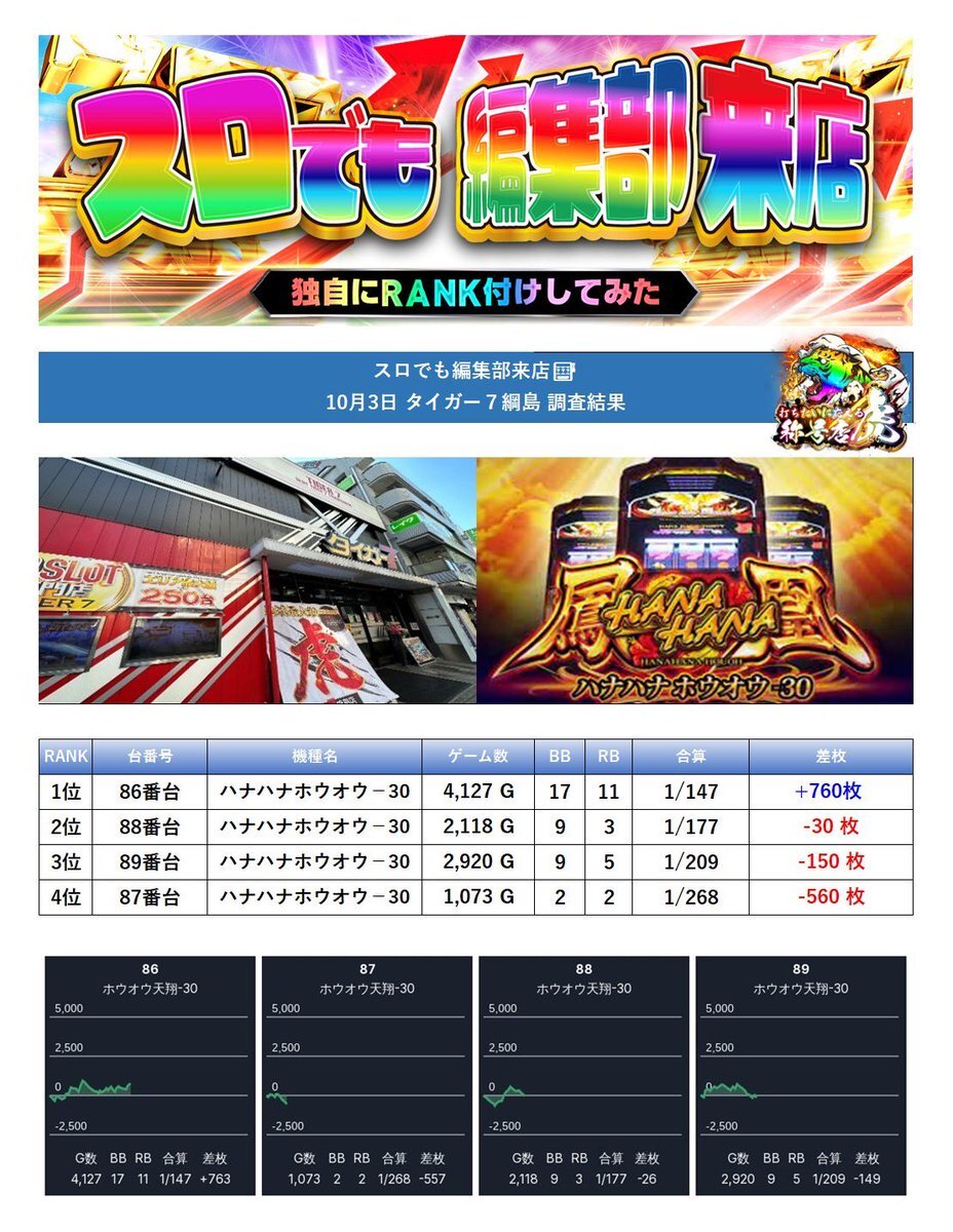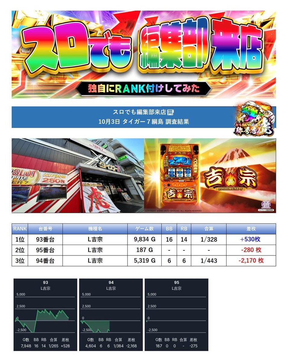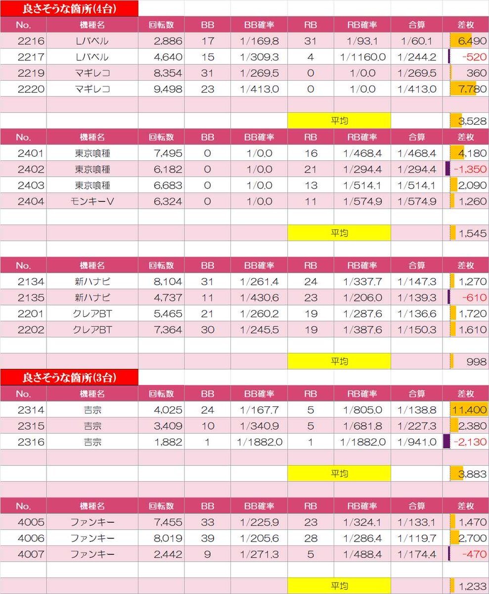 10/18(土)📝分析結果📝 エスパス 稲毛/第Ⅲ土曜日 🎉10月は創業月間🎉 『SS・蓮パーちゃん&ゆらちゃん』 『桜梅桃李』 ☀️全台系濃厚、高配分、並び、末尾☀️ ☀️店内の至る所に多彩な仕掛けあり☀️ 👑全台系濃厚👑 🎖️吉宗(3/4台+)➡平均+1,475枚 👆複数の+2000枚以上など出玉充実! pic.x.com/CSHiDN3hs7
