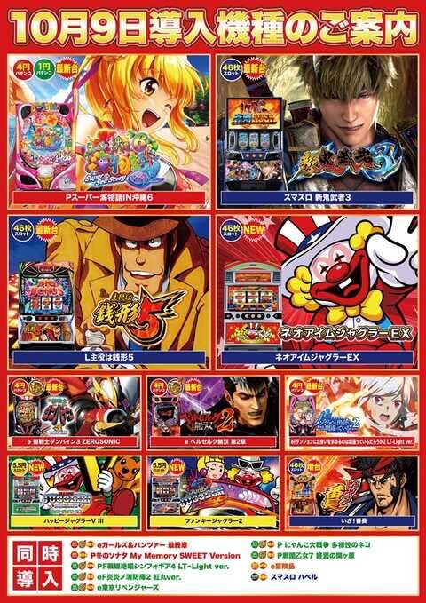 9/29 イクサム甚目寺 <パチデミー賞> 抽選63人 全系×3台,7連×2箇所,3連×3箇所/244台 全仕掛け発動の充実した仕掛け内容に🔥 ■全台系 ガールズ 3台 ■7台並び 北斗 キンハナ+沖ドキB(全系) ■3台並び モンハン からサー+デビメ クレア+エヴァ ■単品 東京喰種,カバネリ x.com/slokachitk/sta…