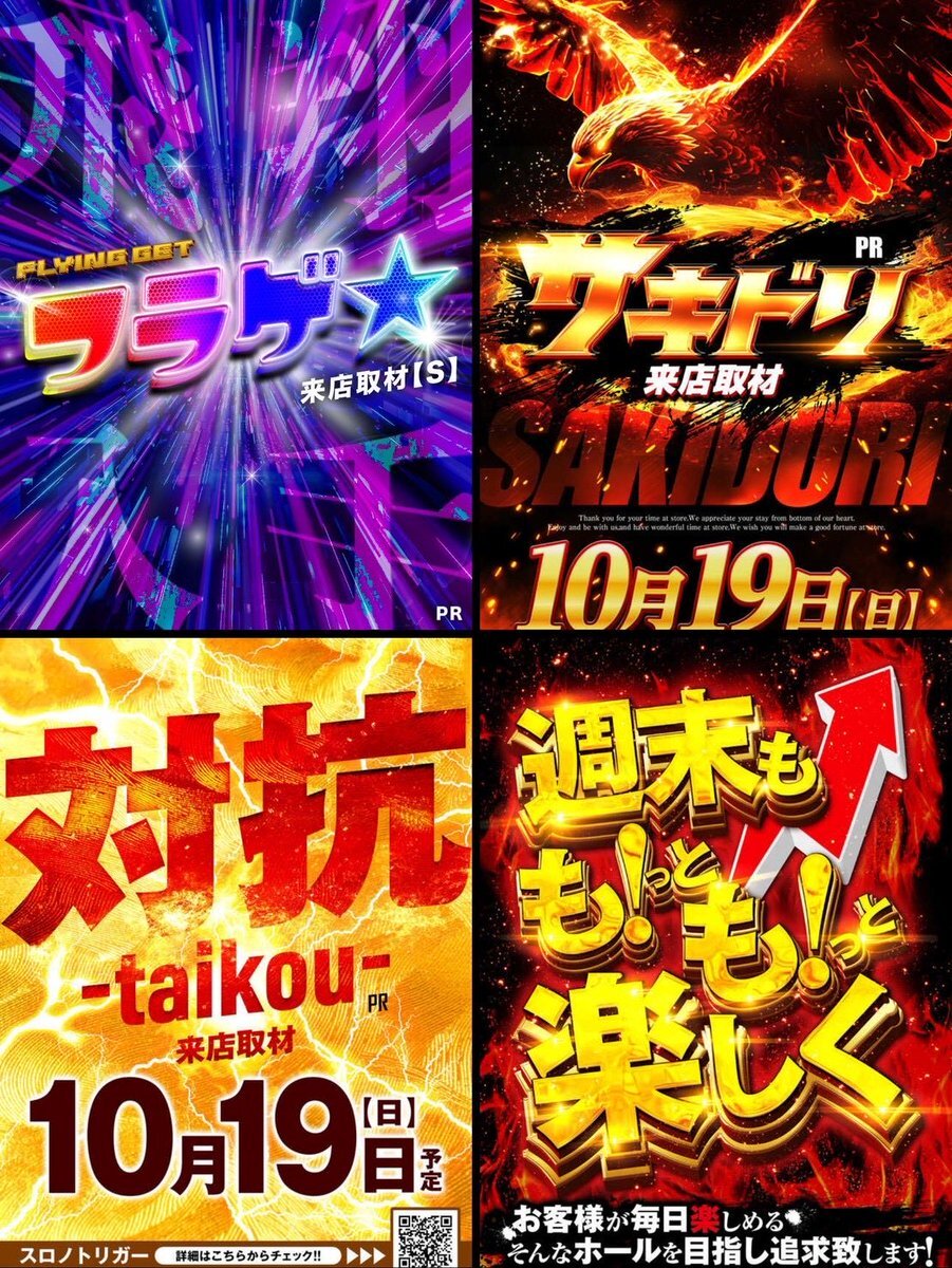📍10/19(日) ピーアークおゆみ野 |フラゲ★来店取材PS |サキドリ来店取材 |週刊りみっとくん【最終日】 |サンキュー対抗来店取材 |創業月間/対抗日 【過去傾向/狙い目】 ✅スロット 🚩フラゲ対象機種 🟨マジハロBT or 防振り 🟥3台以上機種 × 1 🟥??? × 1 🟩北斗:10台 🟦??? × 2 x.com/slot_channel_/…