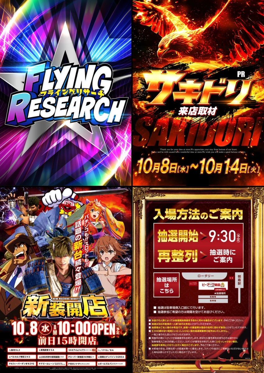 📍10/12(日) ピーアーク松原 |フラゲ★来店取材S |サキドリ来店取材 |週刊りみっとくん |タイガー玉20超来店取材 |共闘【松原×草加×越谷】 |創業月間 【過去傾向/狙い目】 🚩フラゲ対象機種 🟨マンキン or ダンバイン 🟨??? × 1 🟥??? × 1 🟩かぐや:5台 🟩からくり:5台 🟩吉宗:3台 pic.x.com/boHI0rHclr x.com/slot_channel_/…