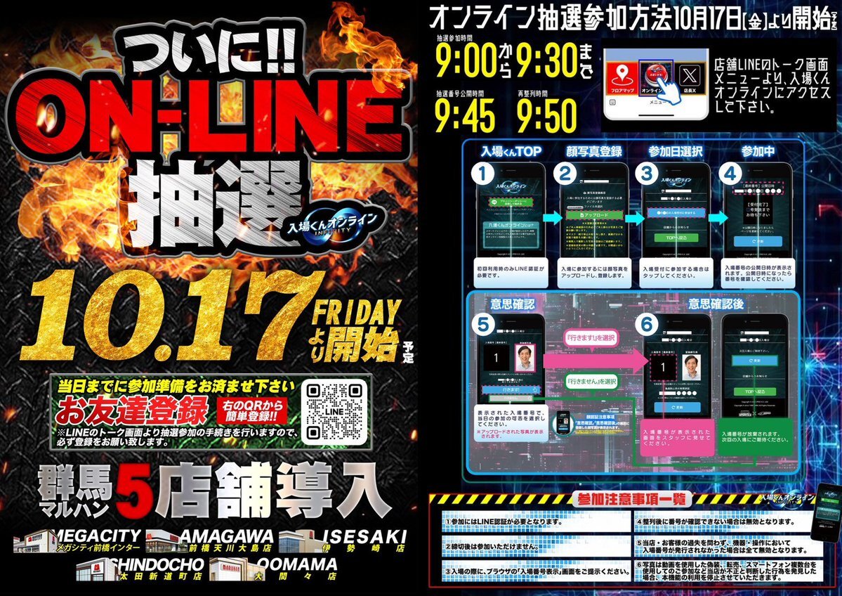 明日1⃣0⃣月1⃣9⃣日(日) 朝1⃣0⃣時オープン⏰ ✅取材実施(予定)⚡️ 📌ディグスロ⛏️ 🔶🔷🔶🔷🔶🔷🔶🔷🔶🔷 ✅群馬県パチンコ・パチスロ 💫✨ファン感謝デー💫✨ 🔸🔹🔸🔹🔸🔹🔸🔹🔸🔹 📌ステキな賞品がその場で当たる! ➥抽選は毎日3⃣回実施! 🔸🔹🔸🔹🔸🔹🔸🔹🔸🔹 📌3⃣日間連続開催! 1⃣7⃣日(金)