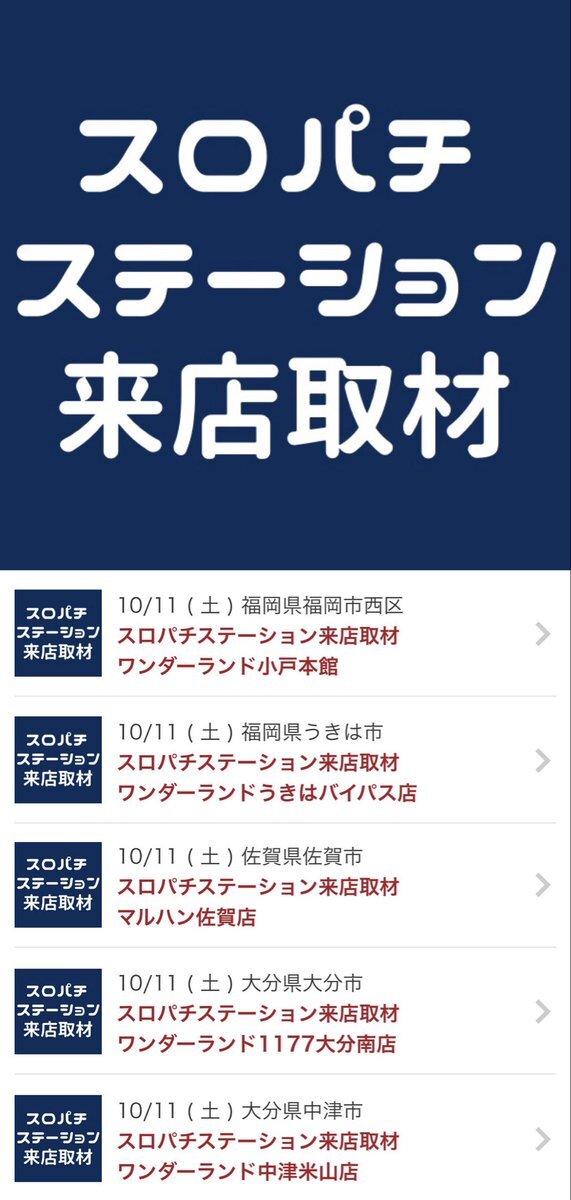 👑10月16日🌈明日のスロパチ系 . 👑ワンダーランド百年橋 📍6のつく日 🌈スロパチステーション取材🔵 . 👑マルハン本城 🌈スロパチステーション取材🔵 . 👑スーパーDステーション39筑紫野 🎁スロパチアワード景品 . 👑ワンダーランドうきはバイパス 📍6のつく日 🎁スロパチアワード景品 . x.com/amaou3150/stat…
