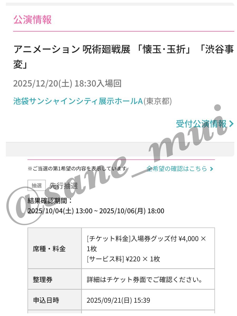 【譲渡】 アニメーション 呪術廻戦展 懐玉 玉折 渋谷事変 チケット 東京会場 【譲】12/20 整理番号R 【求】入場特典 来場者特典 クレカで支払い済みです。 スマチケで分配させて頂きます。 地方住みで行けないため特典のみお返ししていただける方がいればチケット代無しでお譲り致します pic.x.com/BhhaciqJlq