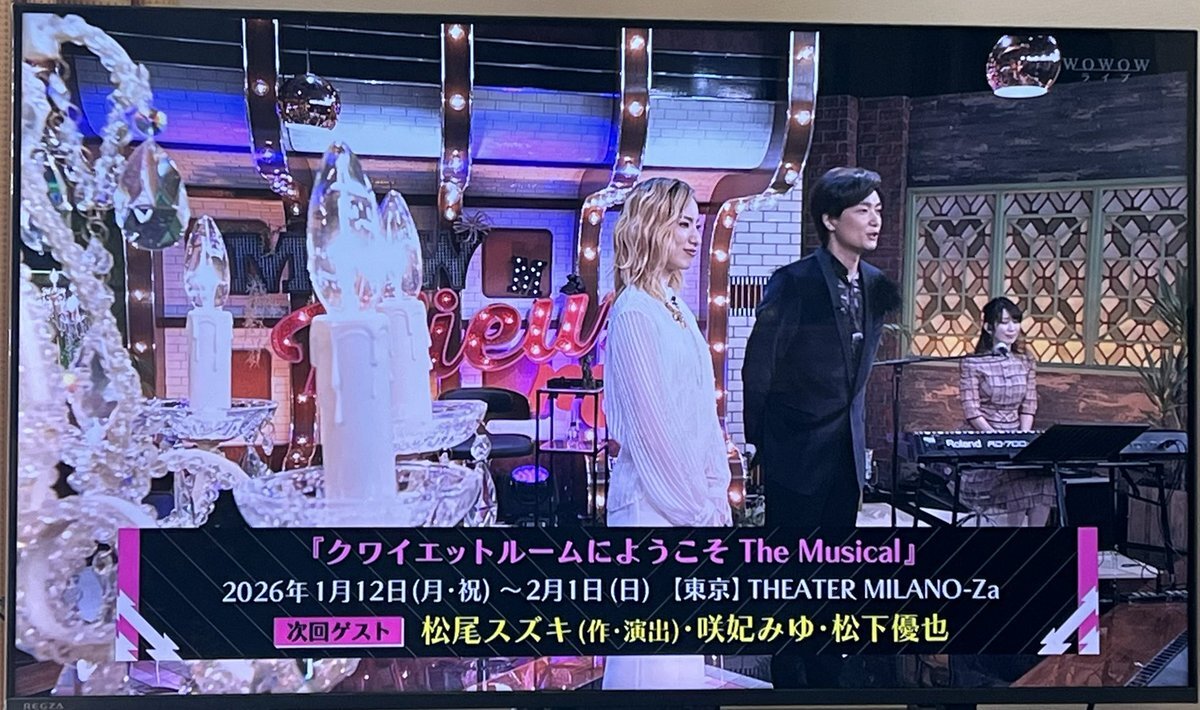#芳雄のミュー 第28話 『#クワイエットルームにようこそTheMusical 』より 🐾#松尾スズキ さん 🐾#咲妃みゆ さん 🐾#松下優也 さんがご登場 来年1月開幕の新作ミュージカルについてのトーク🗣️ や スタジオでの生歌唱🎤劇中歌の歌唱披も 📺12/3(水)午後10:00生放送 x.com/wow_yoshimu/st…