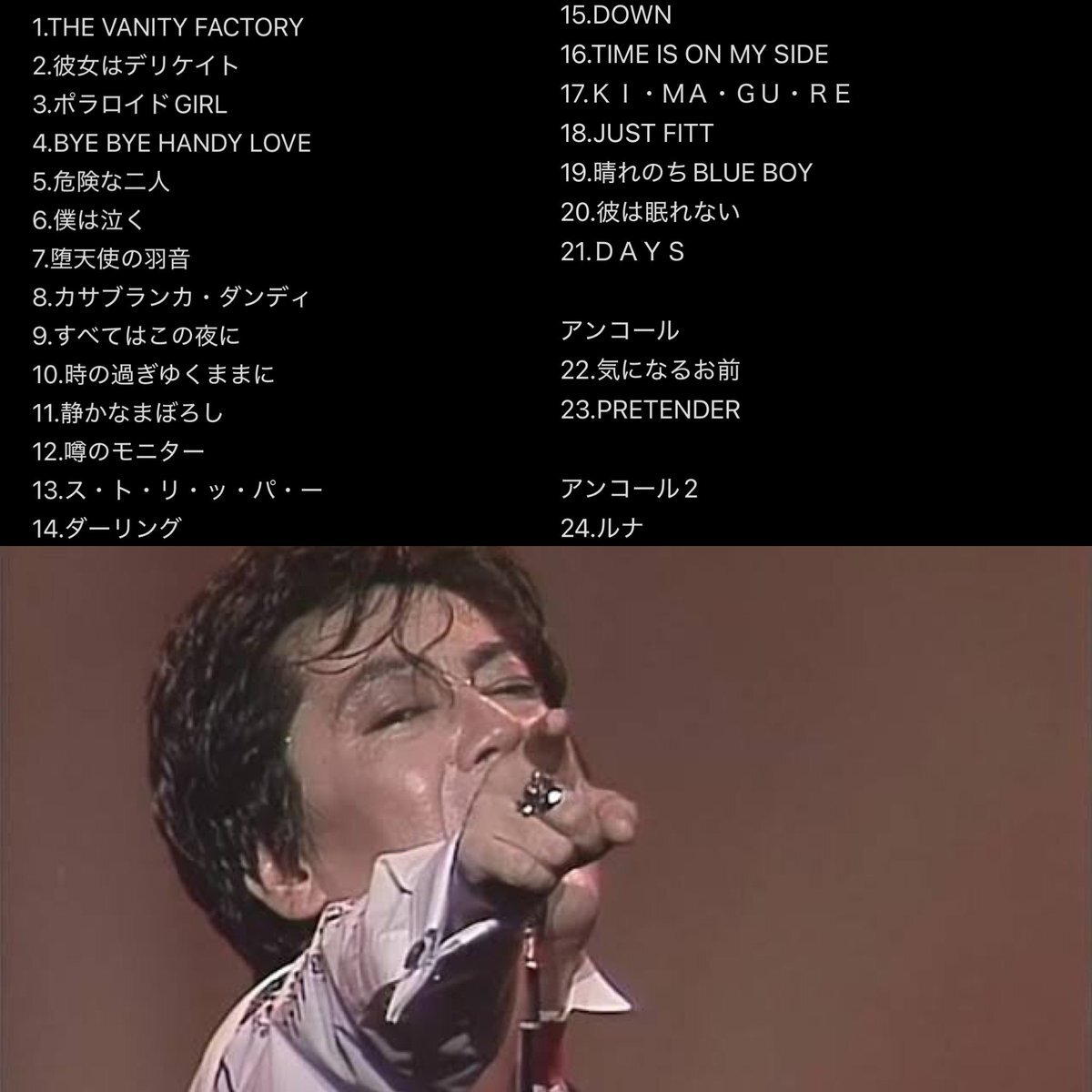 「伝説のコンサート 沢田研二」BS 19:30 1989年10月13日に東京ベイNKホールでのコンサートを36年ぶりにリマスターでお届け 佐野元春・松任谷由実・忌野清志郎・井上陽水などそうそうたる顔ぶれのソングライター陣による楽曲など、息をつく間もないバリエーション豊かなセットリストが見どころ