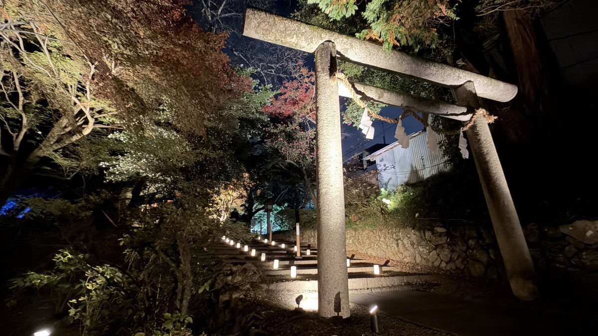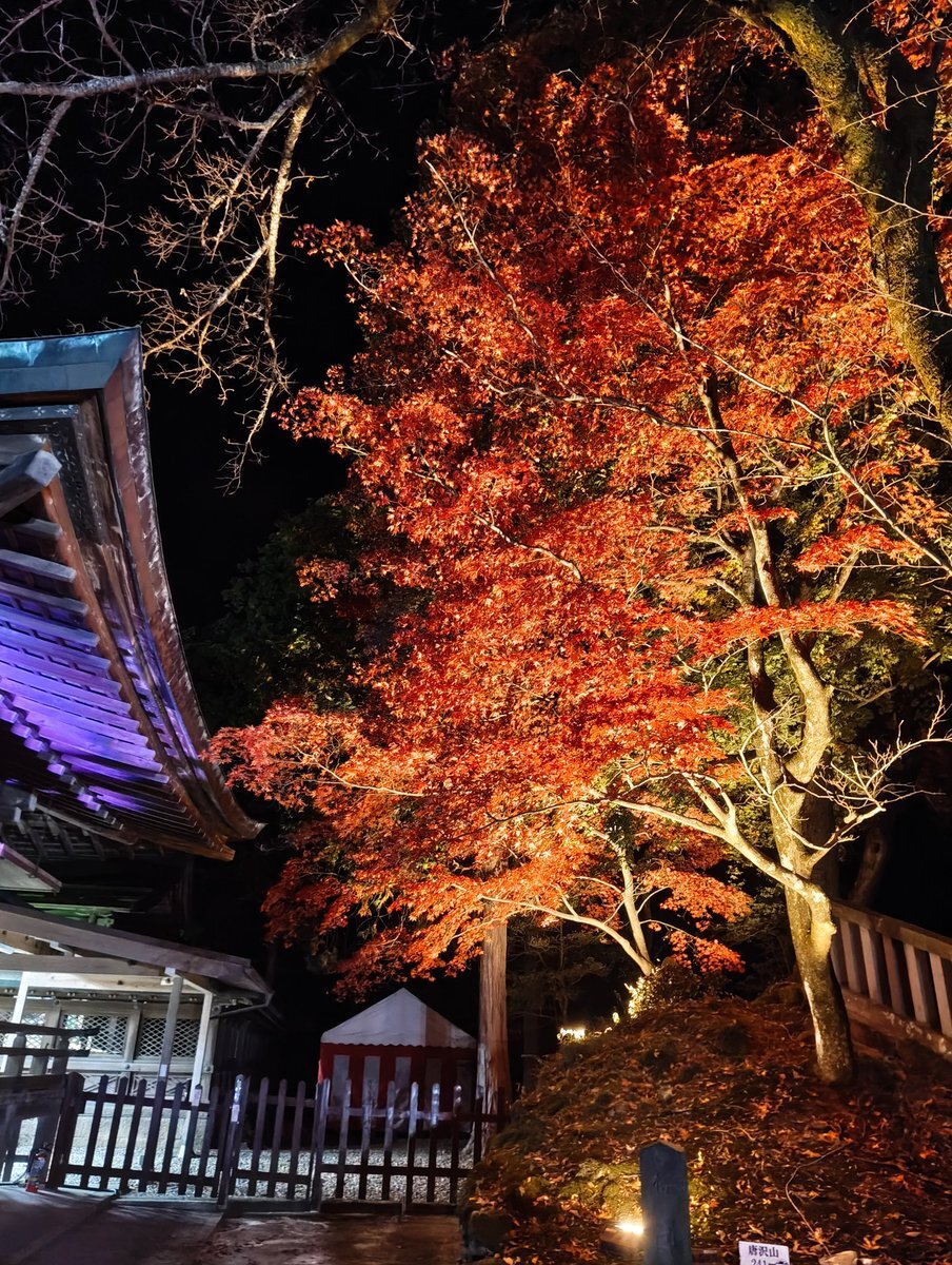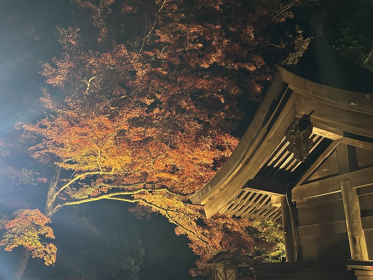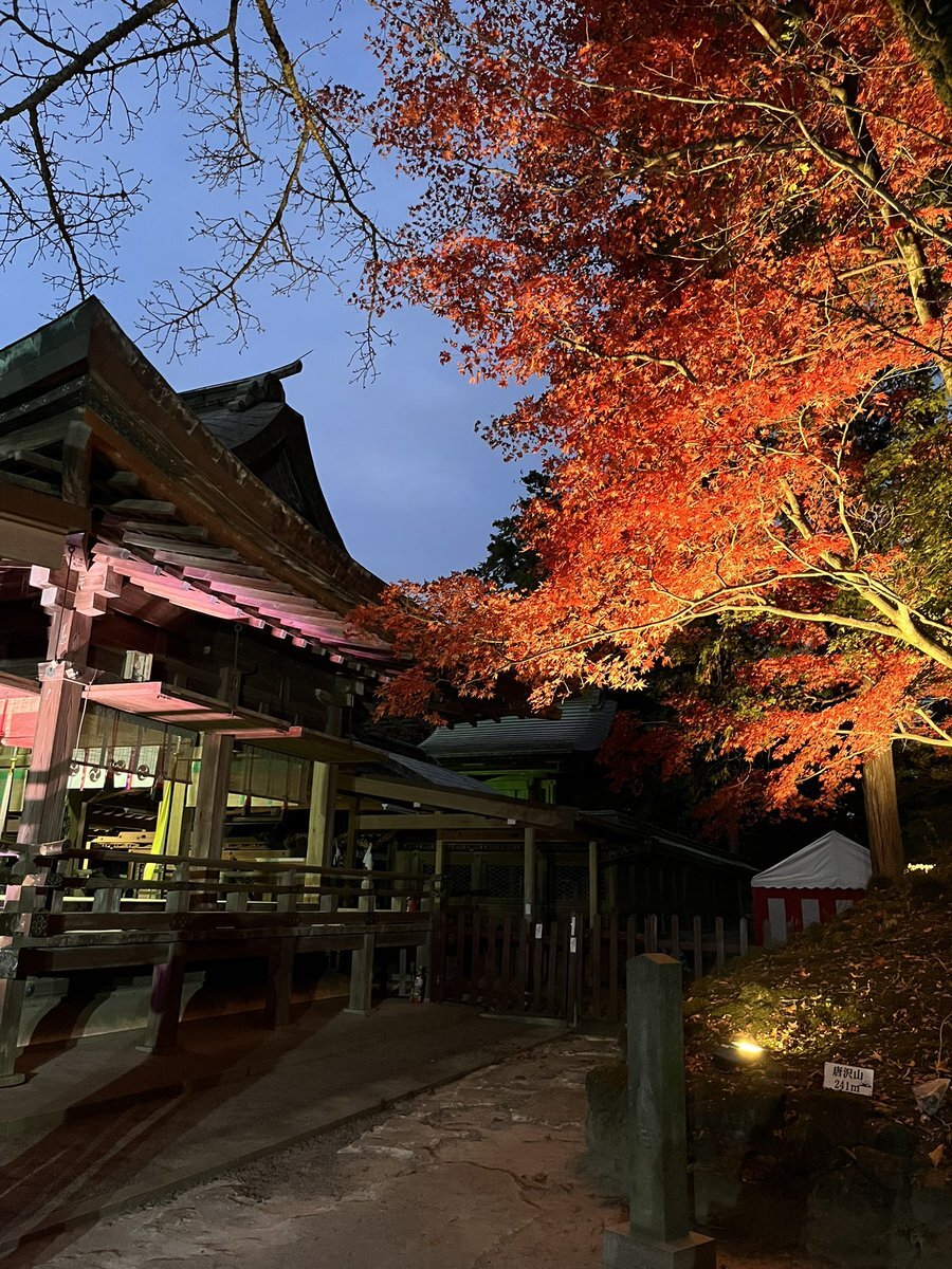 今年はまだちゃんと紅葉見てなかったなと思いたち夜のドライブ🚗³₃ ライトアップされた紅葉 🍁とプロジェクションマッピングのコラボを見ながら羽生くんのアイスショーが頭をよぎりました😇 めっちゃ綺麗でした✨ @唐澤山神社 pic.x.com/hiQLv5ypIF