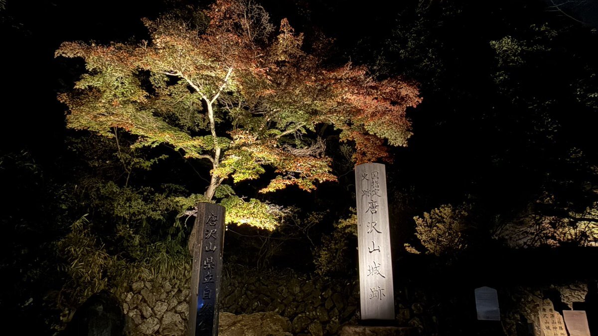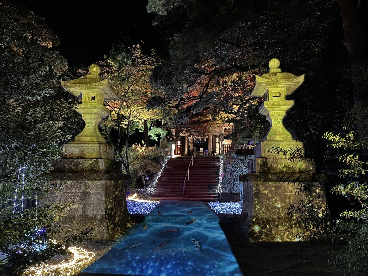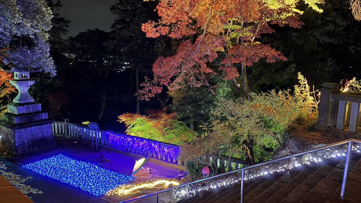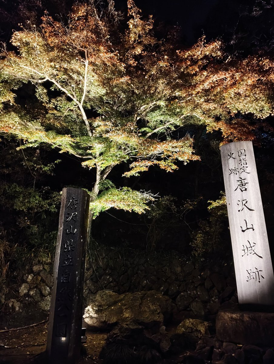 今年はまだちゃんと紅葉見てなかったなと思いたち夜のドライブ🚗³₃ ライトアップされた紅葉 🍁とプロジェクションマッピングのコラボを見ながら羽生くんのアイスショーが頭をよぎりました😇 めっちゃ綺麗でした✨ @唐澤山神社 pic.x.com/hiQLv5ypIF