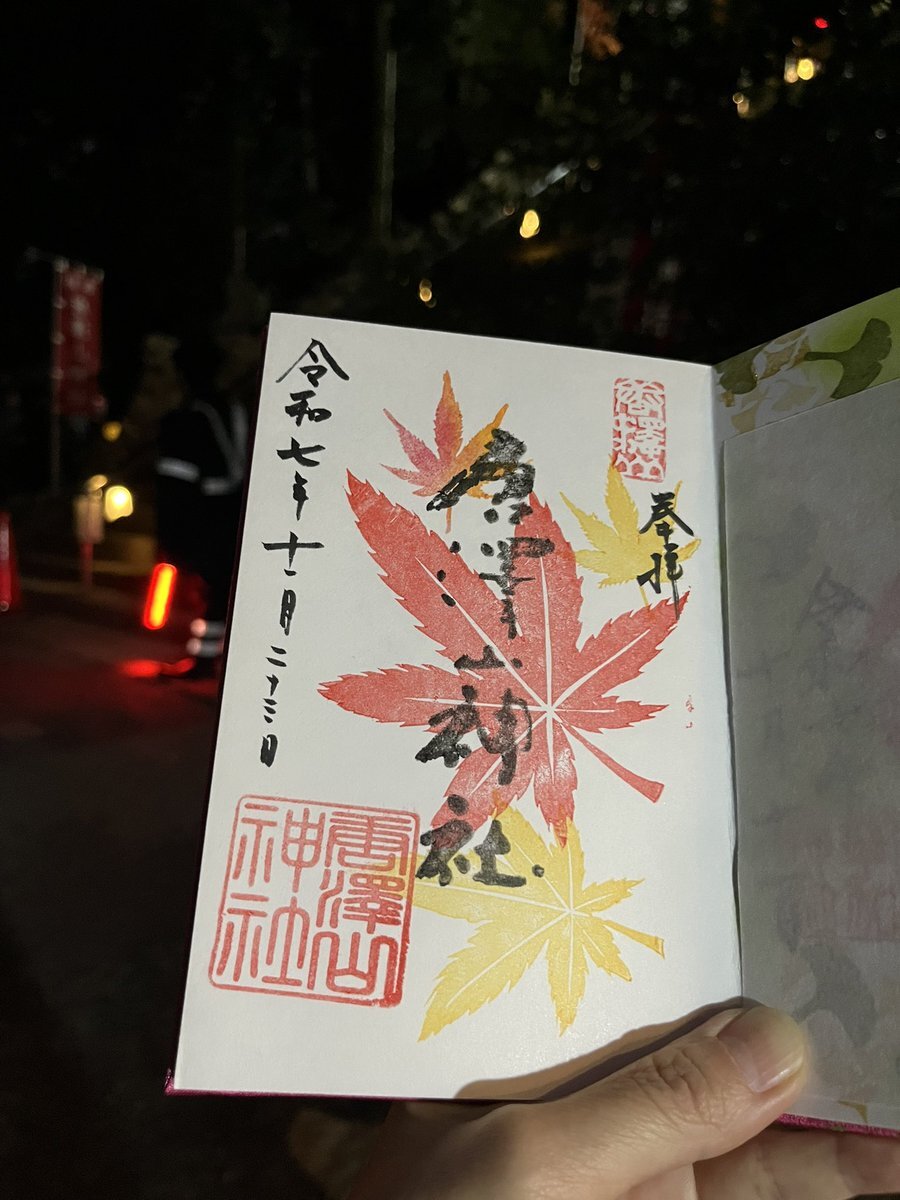 佐野のアウトレットに行って、 紅葉でライトアップしてる 唐澤山神社さんへ⛩️ 紅葉はまだまだこれからでしたが、 幻想的で素敵でした🍁 社務所が閉まっていたので 御朱印は諦めて帰ろうと思ったら 夕方5時から開きました〜♪ もみじ🍁の御朱印ステキすぎ😍 pic.x.com/ksKClGJhDG