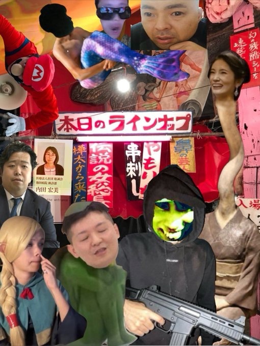 新宿の花園神社の酉の市でカツドンチャンネル(寄生の姿)変態仮装のスーパーマダオ、パワハラネズミ男の内田宏美、伝説の弁護士の唐澤貴洋、エミメルダイアリー、カッパの長澤大輝、ろくろ首な後藤千里、カワハギの後藤修久、syamu(宇宙人)、妖怪鼻くそ女の鹿乃つのを見に来た 凄い怖かった pic.x.com/pebNmrm3eA