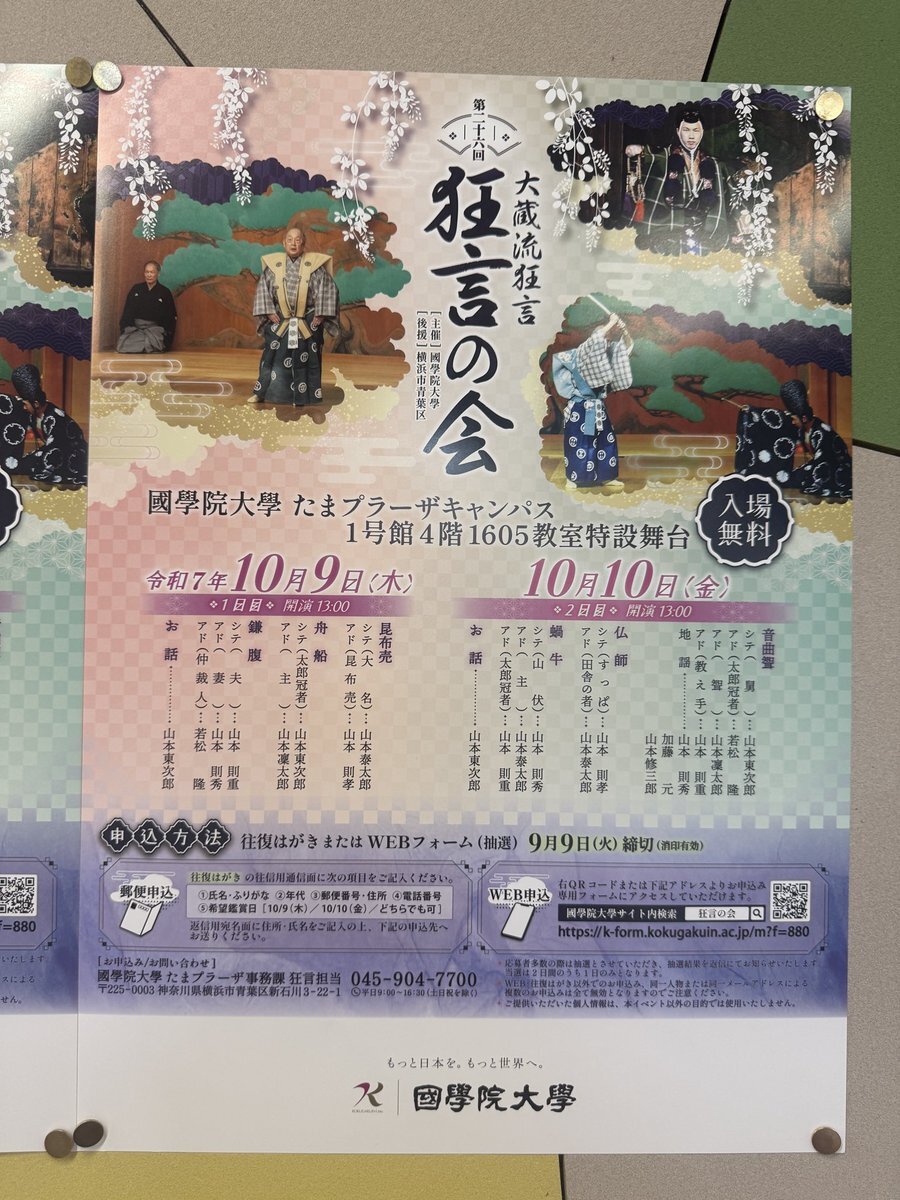1200名ほどが応募したという抽選に当たりまして、國學院大学の『狂言の会』に行きました。 はじめてですが楽しめました😃 人間国宝の山本東次郎さんのお話も、素晴らしかったです✨ 今でいうお笑いですが、面白いだけでなく、その奥には深い教えが組み込まれていると分かりました🌟 pic.x.com/LByxuGZJlo