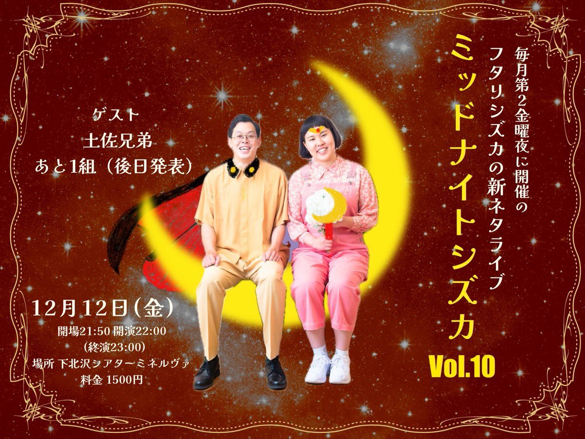 年内最後の新ネタライブです! チケ発は22日の18時となります🥰 フタリシズカの新ネタライブ 『ミッドナイトシズカvol.10』 2025年12月12日(金) 21:50開場、22:00開演(23:00終演) @下北沢シアターミネルヴァ 🎫1500円(配信なし) 【ゲスト】 土佐兄弟、あと1組(後日発表) tiget.net/events/445447 pic.x.com/zpSYEeTfAp