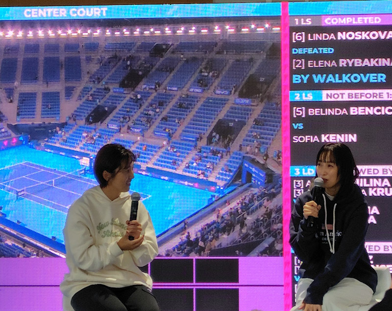第1試合のリュバキナが背中の故障で棄権し、試合がなくなった。 コートには土居美咲さんと千里子さんが登場しこれからボールの打ち込みプレゼント。 x.com/torayppo/statu…