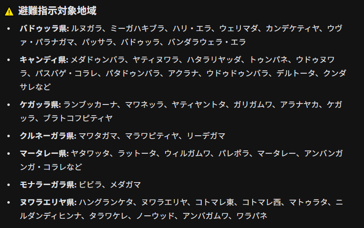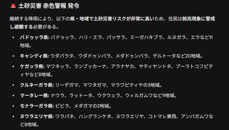 NBRO(国家建築研究機構)は、24時間を対象とする土砂災害の第3レベル(赤色)警報を発表した(11/28 2:00〜11/29 14:00)。 #スリランカ #スリランカ災害 pic.x.com/WCwdzighal