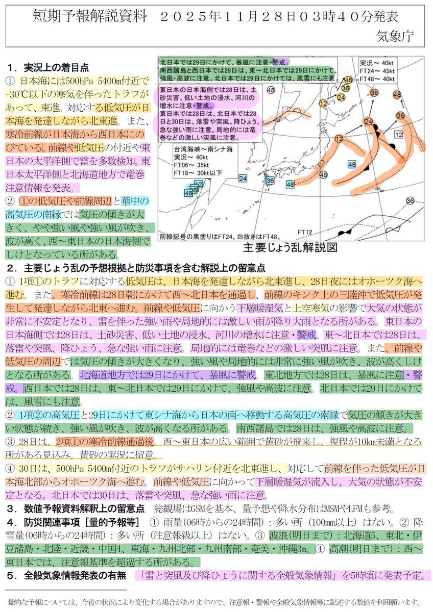 ◇◆北日本では明(29)日にかけて、暴風に注意・警戒。 ◇南西諸島と西日本では本(28)日は、東~北日本では明日にかけて、強風・高波に注意。 ◇北日本では明日にかけては、風雪にも注意。 ◇◆東日本の日本海側では本日は、土砂災害、低い土地の浸水、河川の増水に注意・警戒。 pic.x.com/UVRap8mWnM