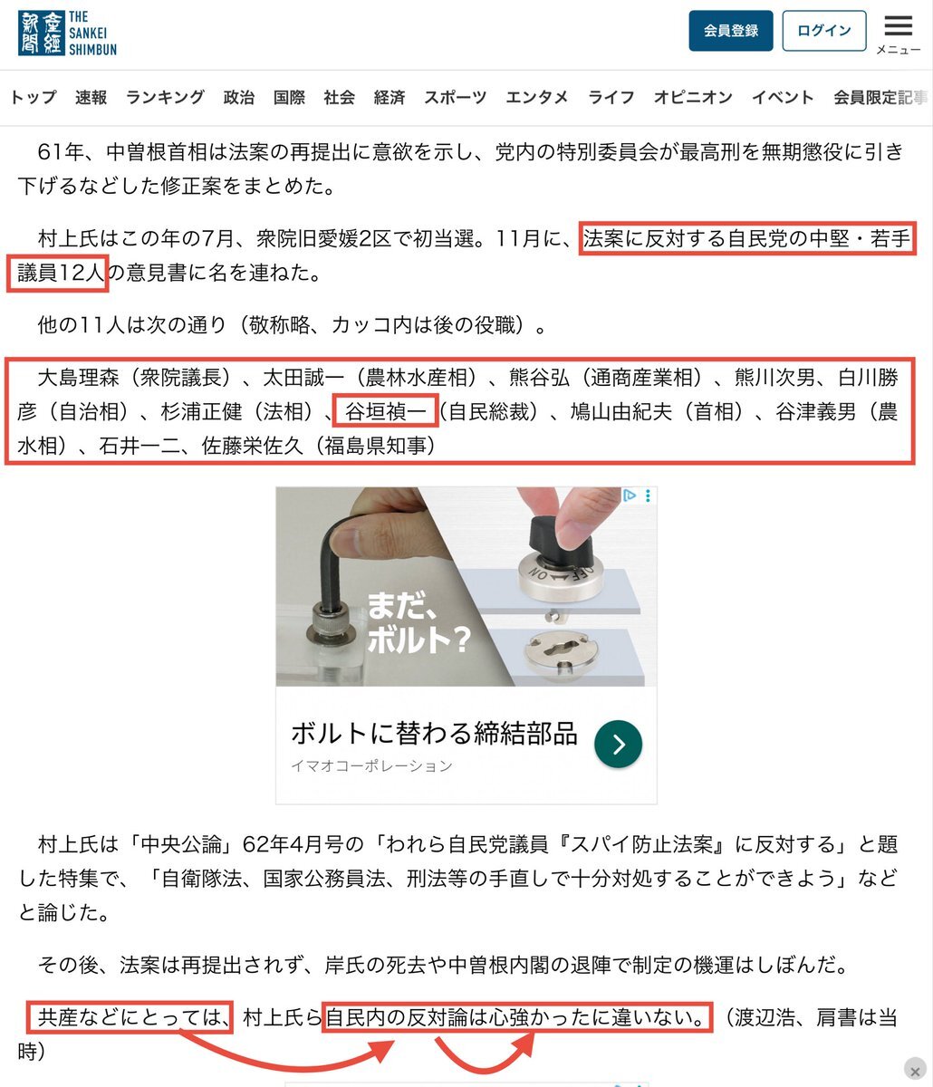 谷垣禎一さん(野党時代の自民党総裁) 昭和61年5月20日の自民党総務会 この会に乱入し スパイ防止法成立間際に妨害をした との証言記録を紹介しました。 (by勝共連合かく闘えり) 谷垣さんご本人がこの件を 否定されるかどうか 注視しています。 x.com/kuchitake/stat…