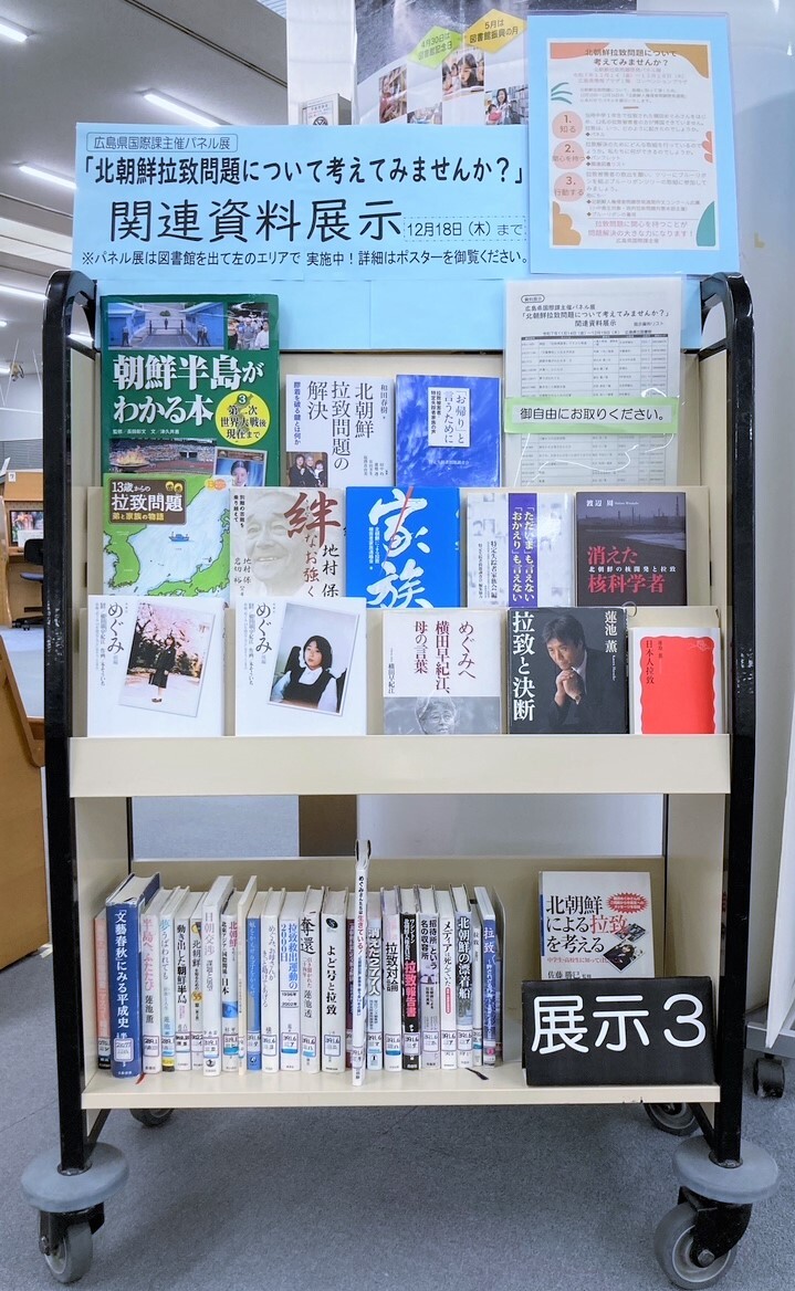 #広島県立図書館 では #拉致問題 に関連する資料を集めた展示を行っています。拉致問題の歴史と現状について考えてみませんか。詳しくは⇒ www2.hplibra.pref.hiroshima.jp/introductionbo… #横田めぐみ さん #地村保志 さん御夫妻 #蓮池薫 さん御夫妻 #曽我ひとみ さん #拉致被害者家族連絡会 #特定失踪者 pic.x.com/OtTXFot7Xy