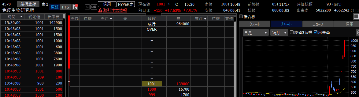 デイトレードライブ連続配信912回目。 日経平均-1620円! そんな地獄絵図ななか数少ないスト高の1つ免疫生物研究所を空売りストップ高にハリツカレ。2日連続ハリツカレ、明日値幅300円で怖すぎる🤮 デイトレが怖い。空売りもっと怖い・・・ pic.x.com/iY8pDr7HIf