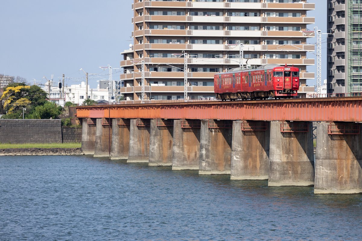 特急きりしまに乗るスケジュール決めた時に「この前入手したねんどろ霧島さん連れてって記念お写真撮りますか!」ってなってたけど結局荷物嵩張るの危惧した結果持ってこなかったし、そうなると他の2名、特に大淀さん何処に連れていきゃええんやってなってたら宮崎市内に『大淀川』ってのがあったのね pic.x.com/9oRKEtsbpI