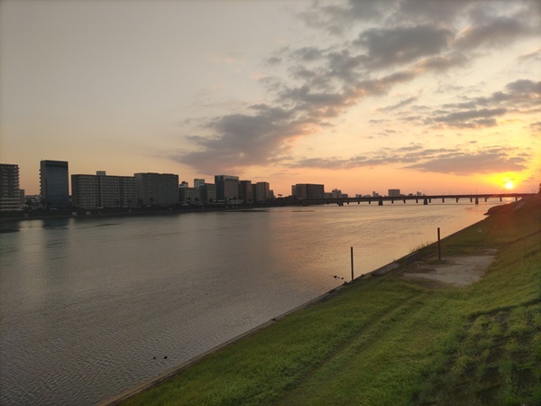 今朝のジョギング:南宮崎駅→大淀大橋→アミュプラザ宮崎→高千穂通り、国道10号→宮崎大橋→大塚東通り→天満橋下から大淀川沿いへ、橘橋南詰→宮交シティ。 写真:橘橋南詰から大淀川河口側を向いての日の出。 pic.x.com/qhyxauUQgd