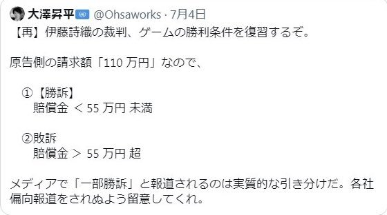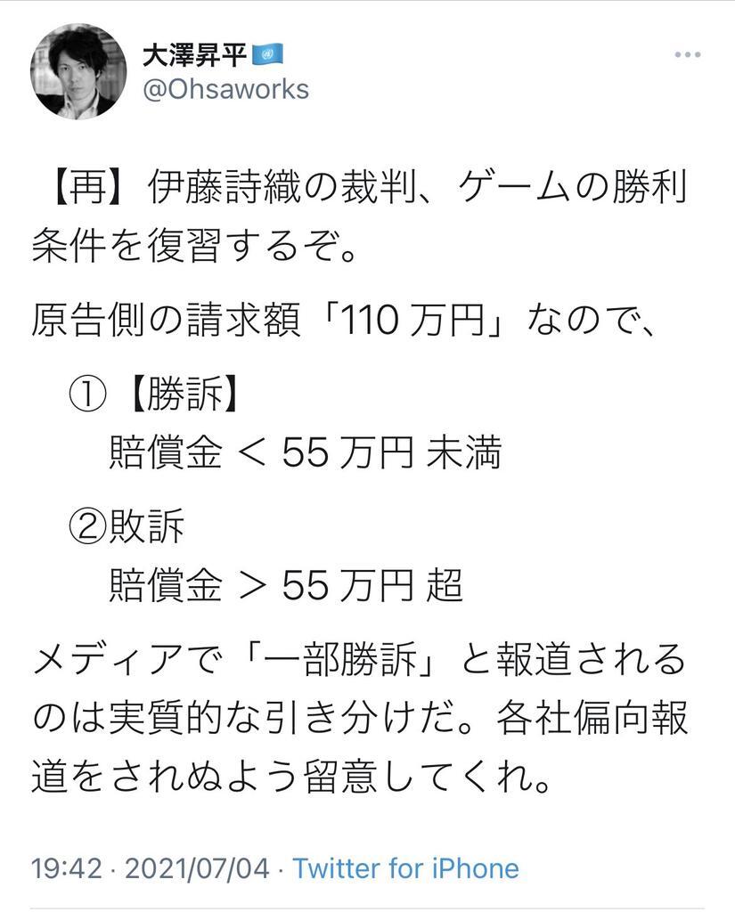 33vs1とか何の計算?と思ったら伊藤詩織氏に敗訴した大澤昇平がほざいてた失笑ものの屁理屈使ってやがった😅 杉田水脈も伊藤氏に敗訴した訴訟で、 賠償金÷請求額して「50%いってないから『勝訴』」とか真顔でぬかすのだろうなぁ🥶オワッテル pic.x.com/TcKPCI9eFD x.com/miosugita/stat…