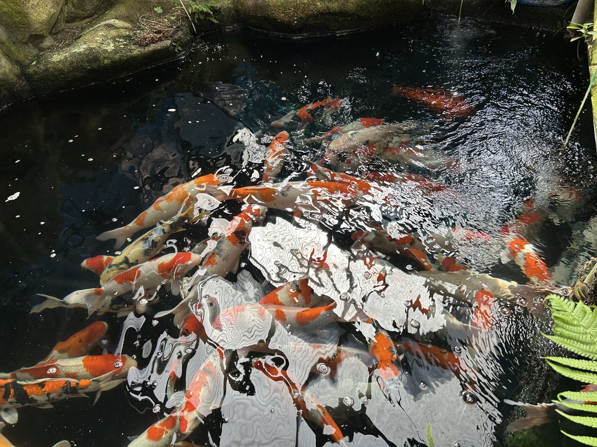 #ごぜん様さま 広島市安佐南区安東から趣味でニシキゴイを200匹以上飼育されている方をご紹介🎤✨ 手作りで足場を組んだ2階建ての水槽スペースは、まるで養鯉場🎏大きい物は体長67㎝!18個の水槽で泳ぐ13種以上の鯉を「可愛いんよ〜☺️」と愛でる姿に、生き物への愛を感じました✨末吉尚恵 #RCCラジオ pic.x.com/CErzdY1WW3