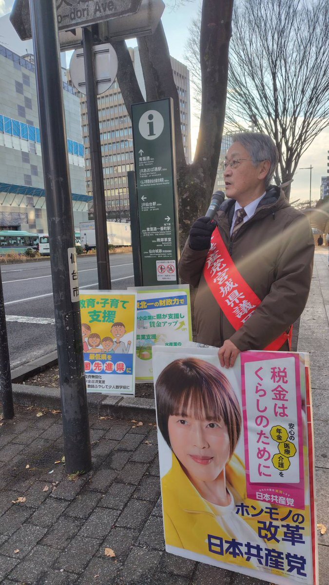 昨日、宮城県議会11月定例会が閉会され、本日、みやぎ県民の声会派による県政報告街宣を行いました🎤 県政を身近に感じていただけますように🎄 #佐々木なつえ #宮城県議会議員 #宮城野区 pic.x.com/GK4lviEzBj